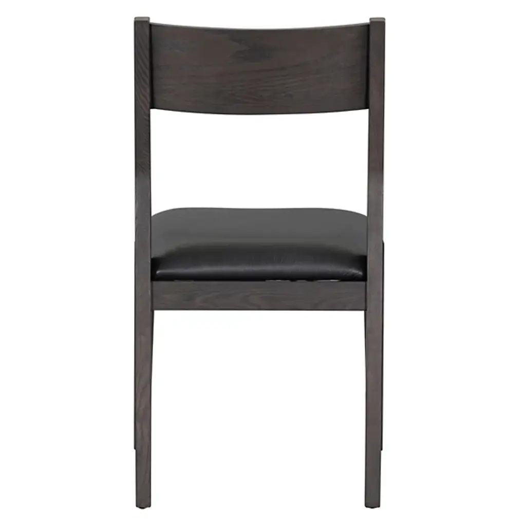 A contemporary classic with rich rustic notes, the Rooney Dining Chair from Classic Home offers comfort and support. The seat itself is an eloquent construction of dark ash wood, with four legs that taper slightly as they descend, while a curving wood back arcs between the vertical posts behind it. An upholstered seat made from tough, top-grain leather offers comfort and softness, contrasting well with the vibrant woodgrain on display.