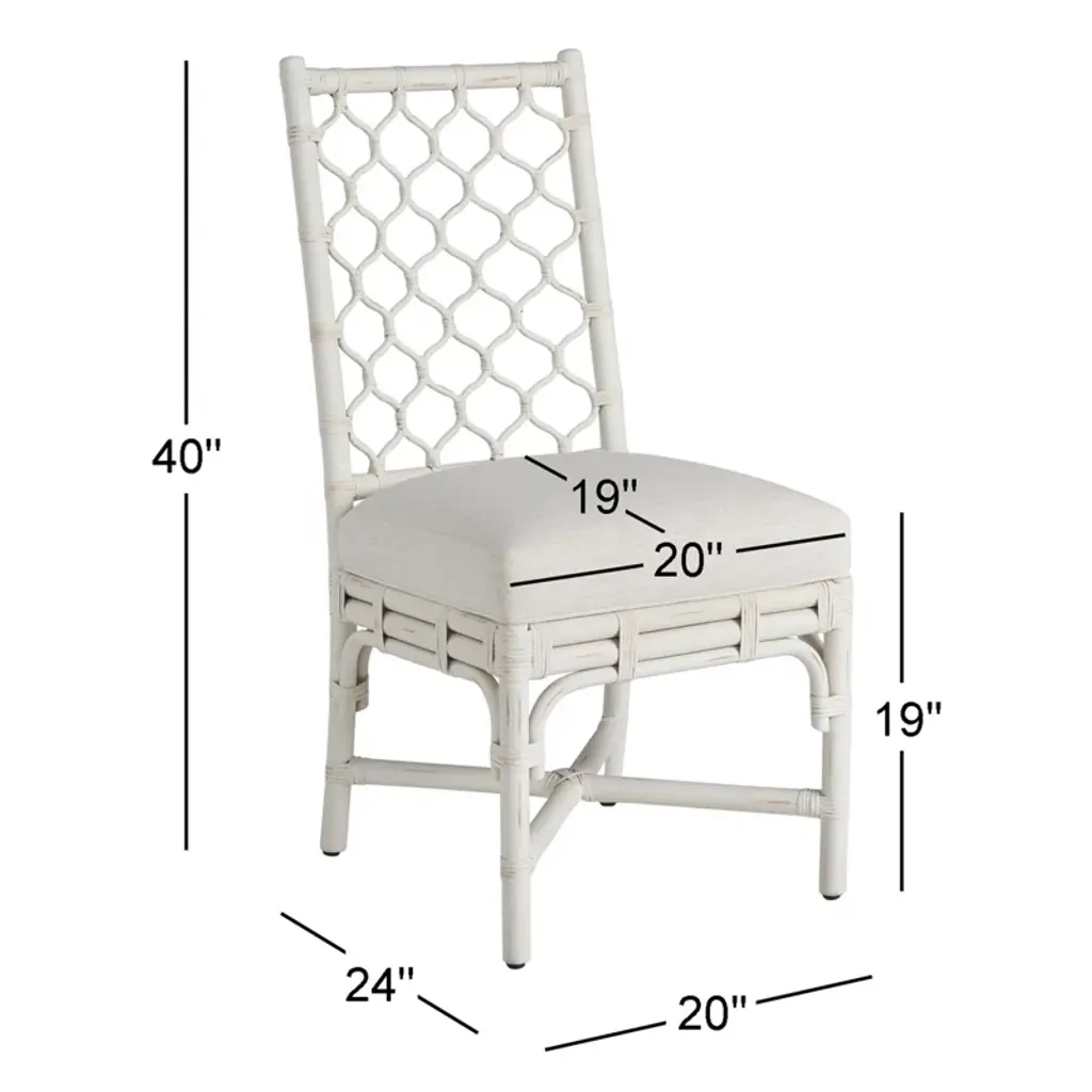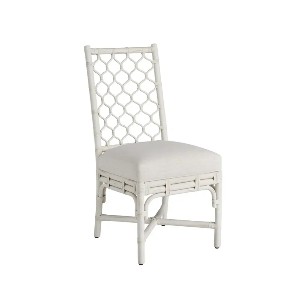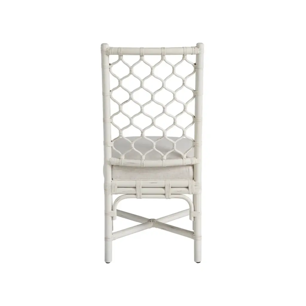 A quintessential quatrefoil pattern defines the Rosalie side chair. A fresh white finish paired with an upholstered seat brings the chair to life.