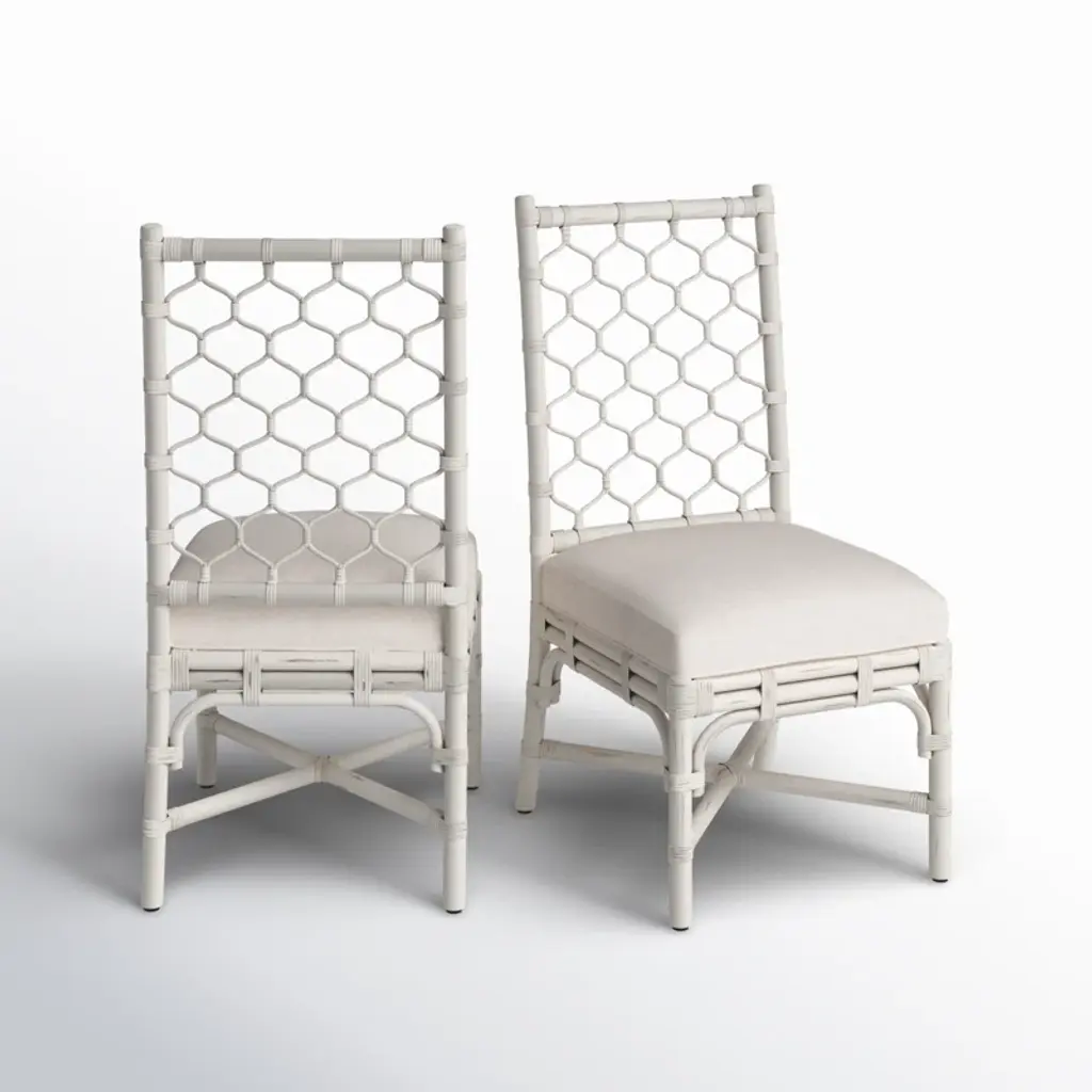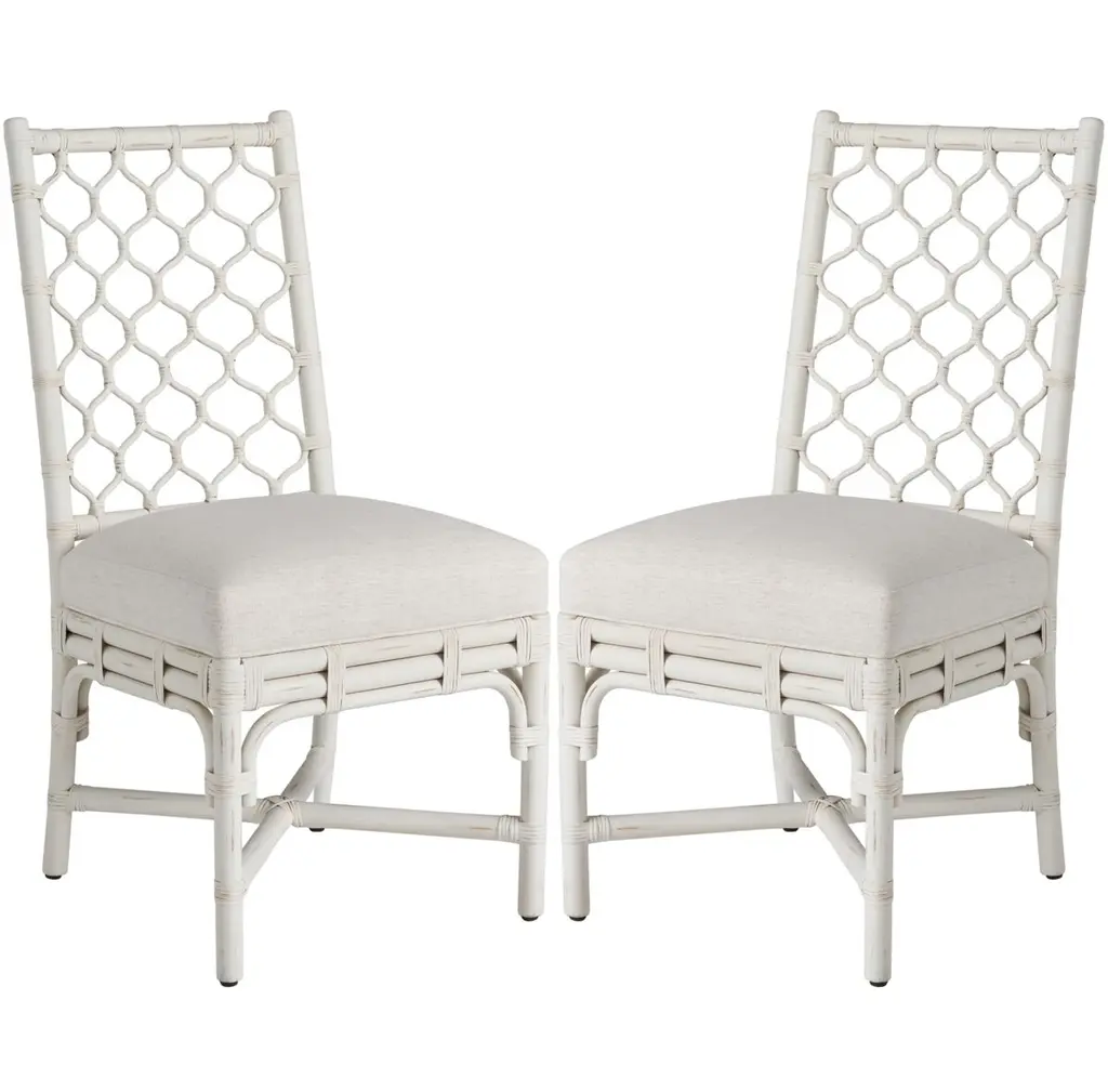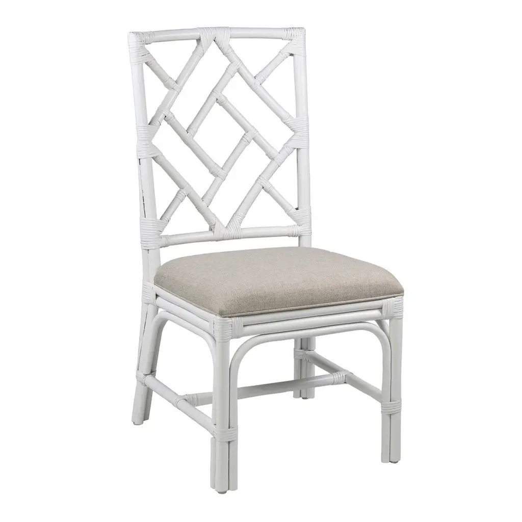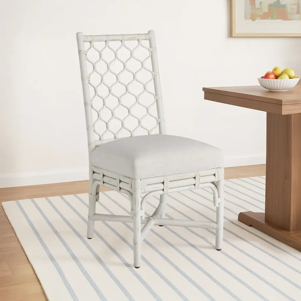 A quintessential quatrefoil pattern defines the Rosalie side chair. A fresh white finish paired with an upholstered seat brings the chair to life.