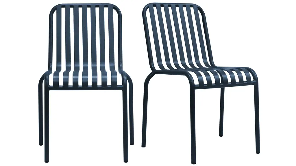 The Rosco Outdoor Side Chair - Set of 2 features powder-coated steel for a wear-resistant finish. Its electrophoresis treatment prevents rust and designed for space efficiency. Stacks up to 8 high. Clean lines and contemporary looks make these side chairs a sophisticated statement in any setting. Elevate your commercial environments, such as hotels and restaurants, or any residential backyard with these durable outdoor pieces.