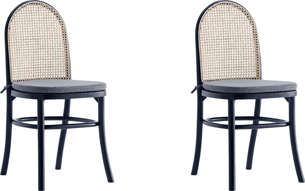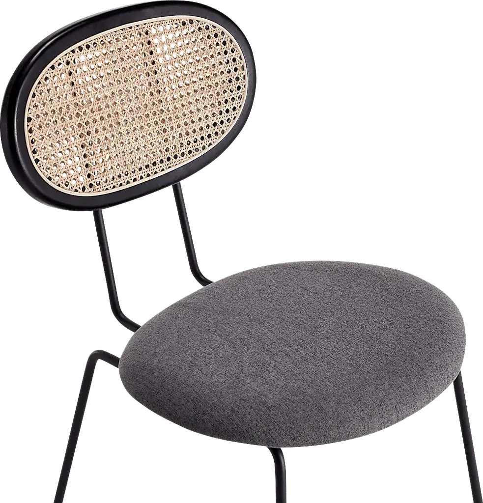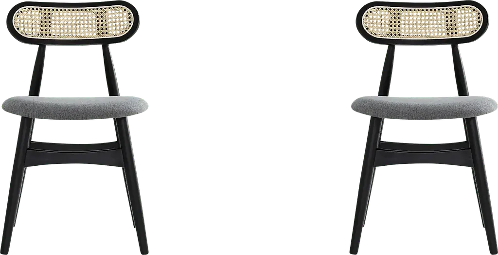 Clever craftsmanship and mid-century modern design collide to bring you the Roseforce gray side chair, set of 2. A smart oval shaped, wood rattan back, rests on a delicate and durable ash wood frame. A luxurious padded upholstered seat completes the chair and provides a cozy setting to entertain in any style home.