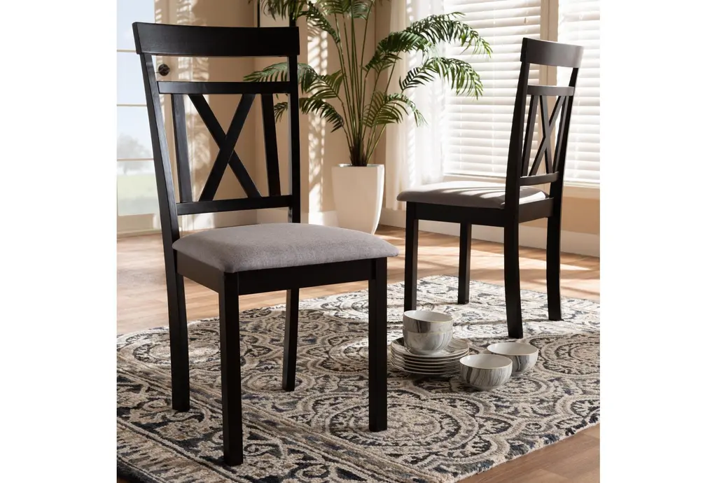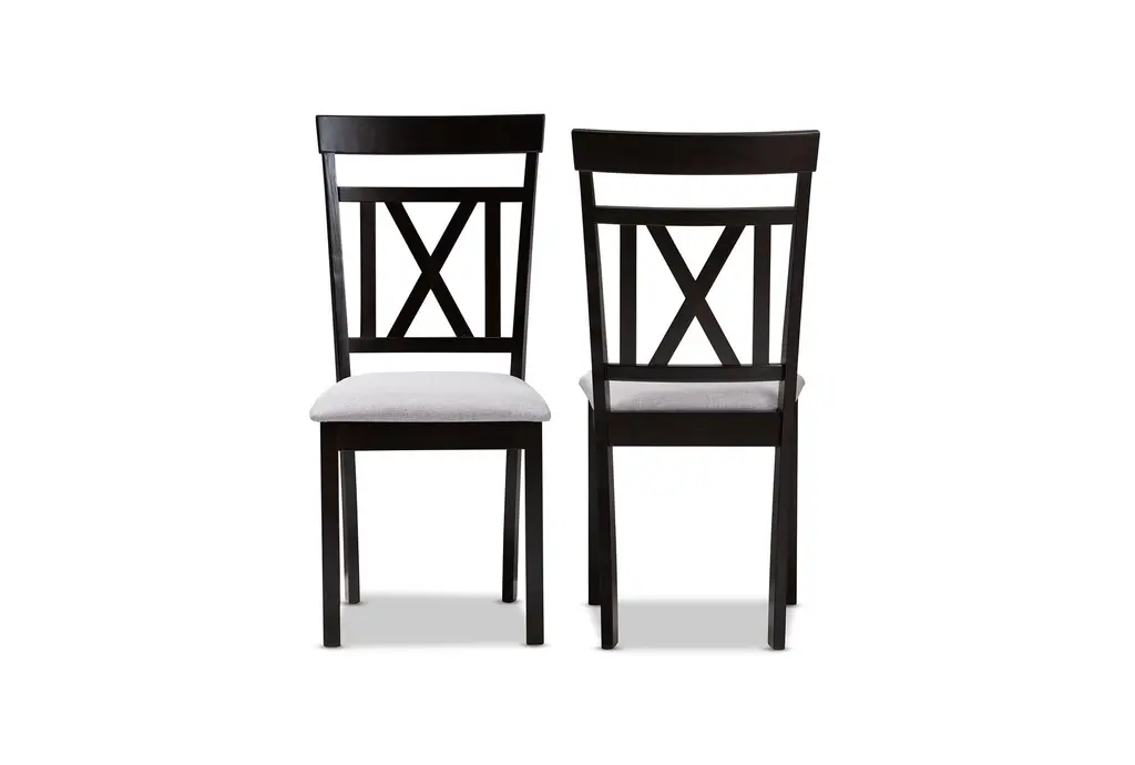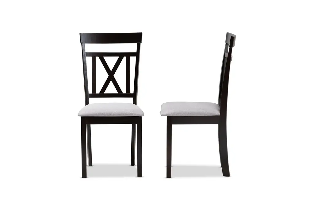 Rosie Modern Grey Fabric Upholstered & Espresso Brown Dining Chair Set Of 2 | X Back | Armless