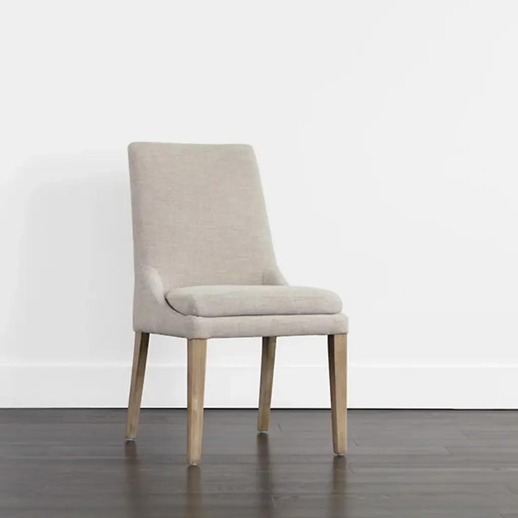 The Rosine Dining Chair from Sunpan adds understated elegance to everyday comfort. Wrapped in soft Effie flax fabric, this chair offers plush seating ideal for meals or group gatherings. Its solid birch wood legs, finished to provide a warm tone, provide lasting support while adding a touch of natural beauty. The chair blends mid-century modern inspiration with contemporary appeal, able to complement a variety of interiors. The textured woodgrain contrasts delightfully with the smooth upholstery, creating a refined, versatile look.