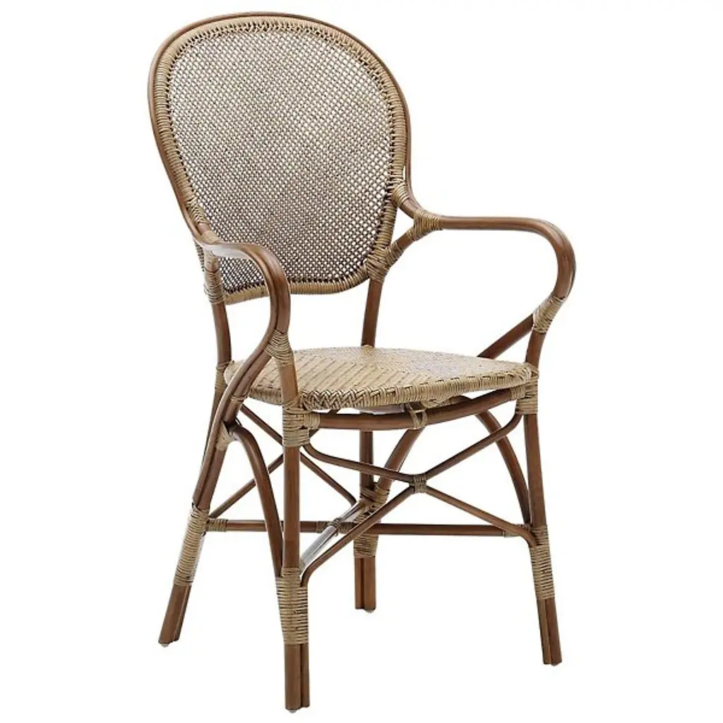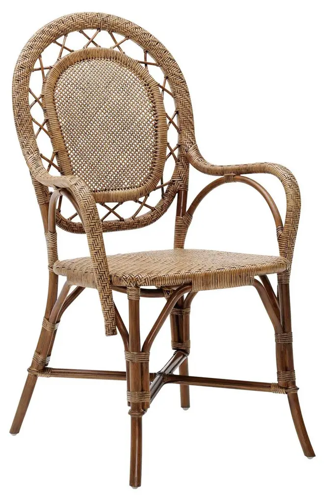 The Rossini Arm Chair is a classic stacking indoor bistro chair that has been part of the Sika Design line for over 50 years. For decades, the Rossini dining chairs have been a coveted choice for use in private homes, among restaurants, and at French bistros and cafes all over the world. It is handcrafted from natural rattan and is built to last as long as its timeless design.