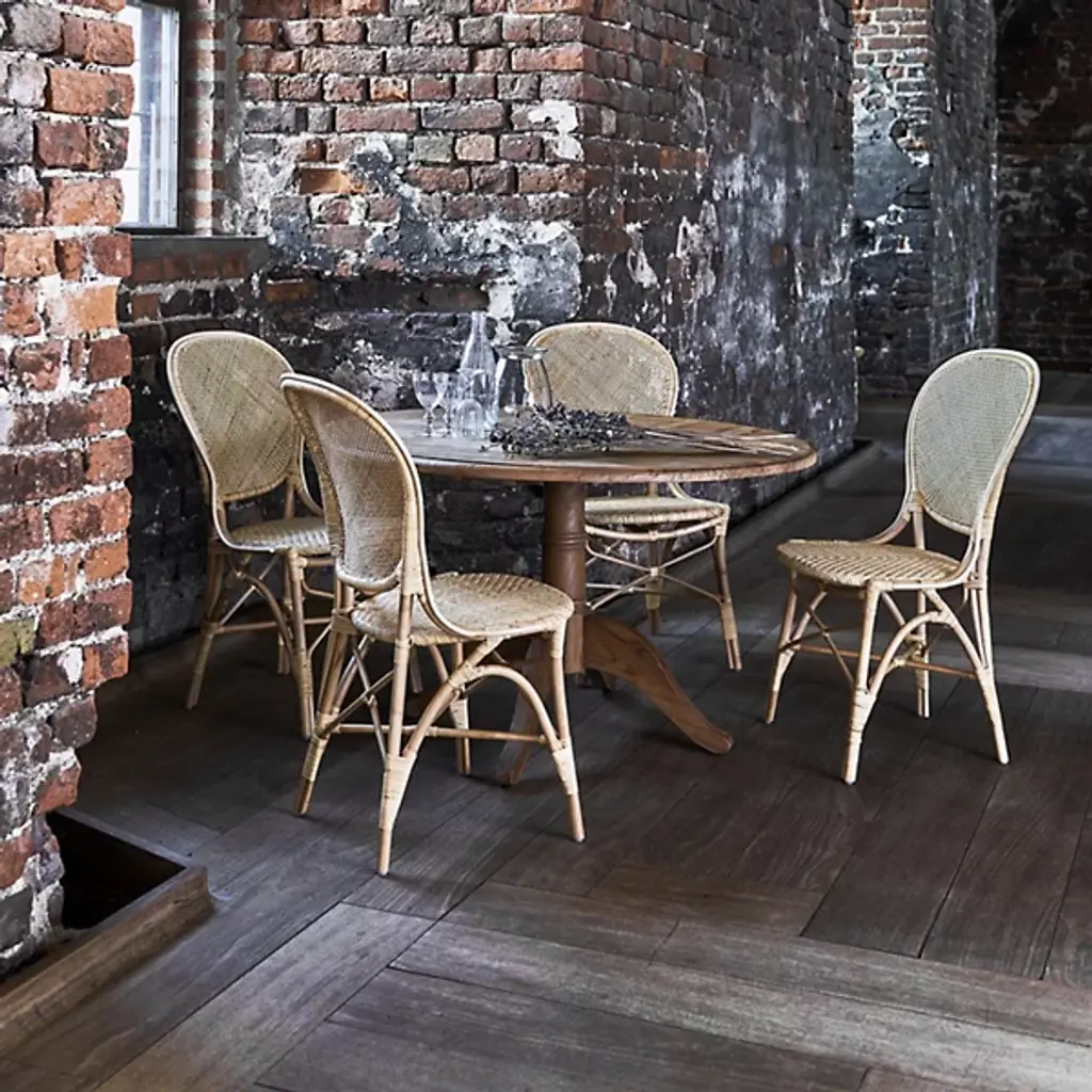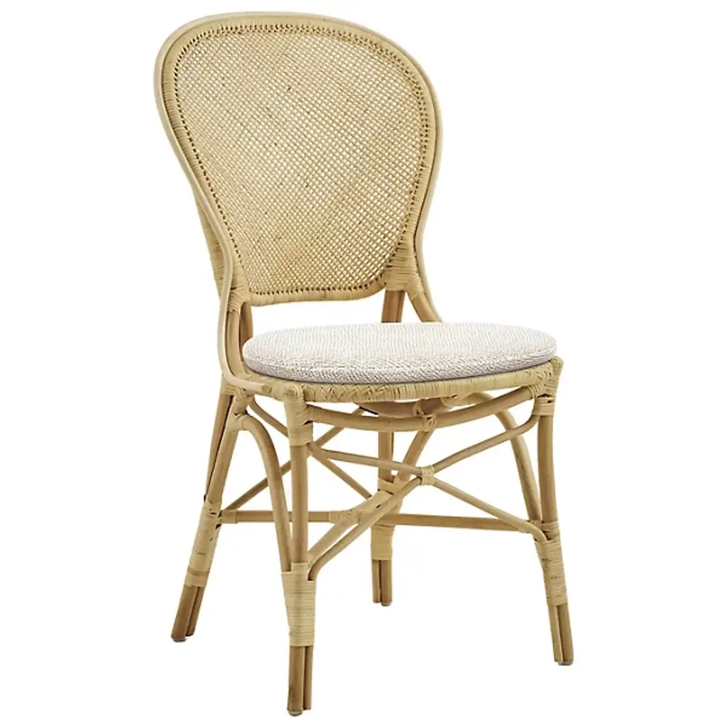 The Rossini Side Chair from Sika Design effortlessly blends elegance and comfort, making it a perfect addition to any Mid-Century Modern or contemporary dining space. Its gracefully arching round back and handwoven herringbone seat add a sophisticated touch, while the natural rattan and poly blend construction ensure both durability and style. Ideal for indoor dining rooms, the chair is equipped with a welcoming seat cushion that provides exceptional comfort, making every meal a more enjoyable experience. Versatile and timeless, this chair enhances any dining setting with its refined design.