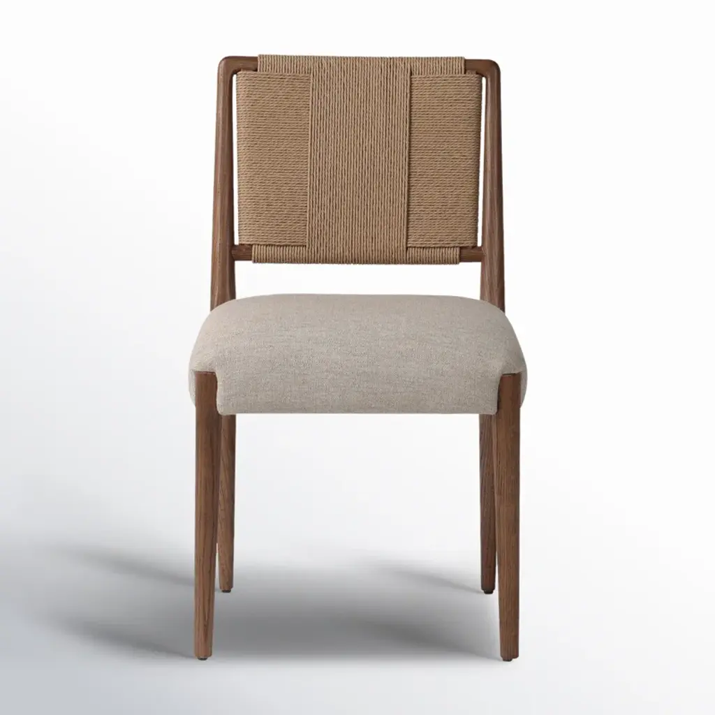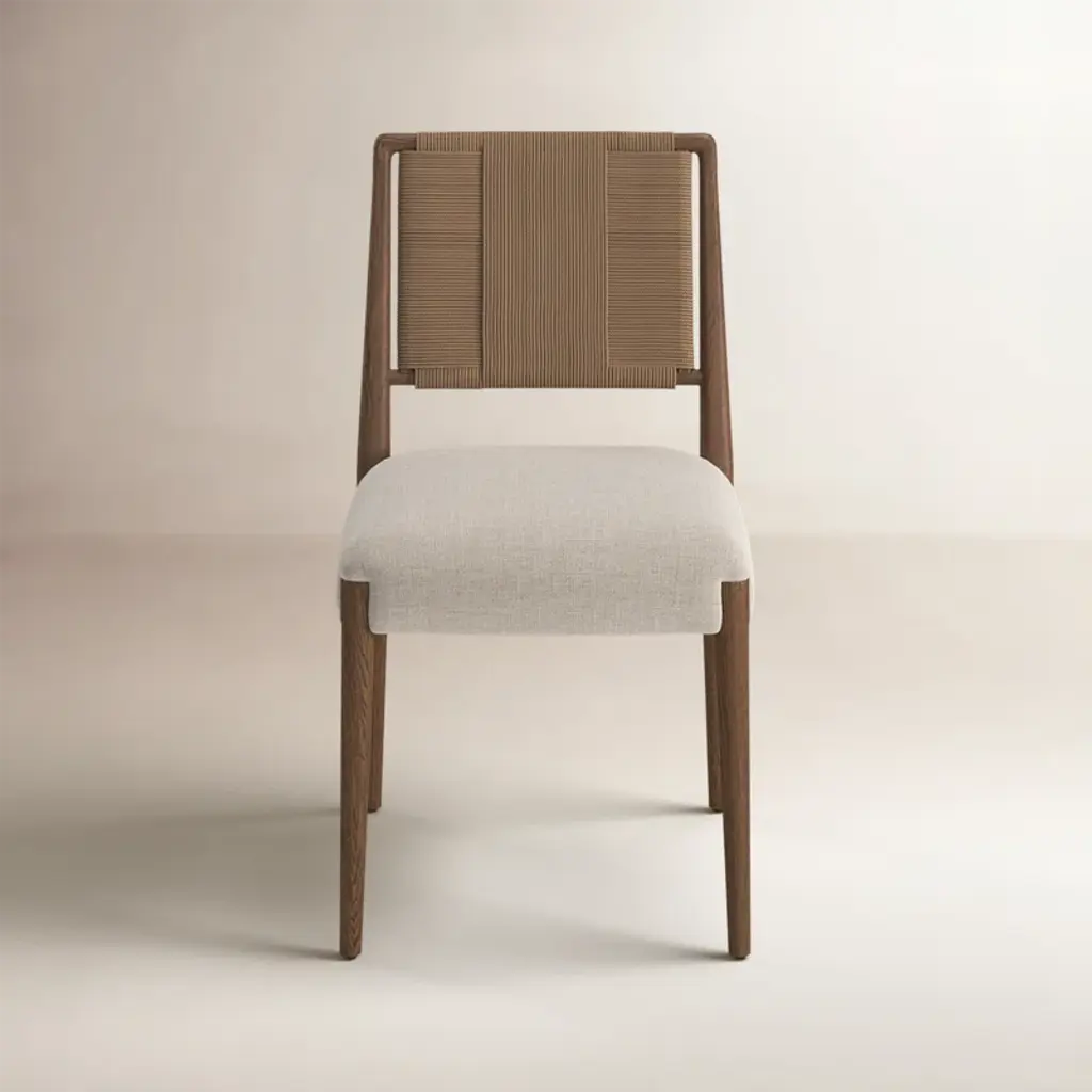 Mixed materials elevate the everyday dining chair. Alternating weave patterns on the seat's back add texture and visual interest, while a thick cushioned seat upholstered in high-performance fabric ensures a comfortable sit. Performance fabrics are specially created to withstand spills, stains, high traffic and wear, ensuring long-term comfort and unmatched durability.