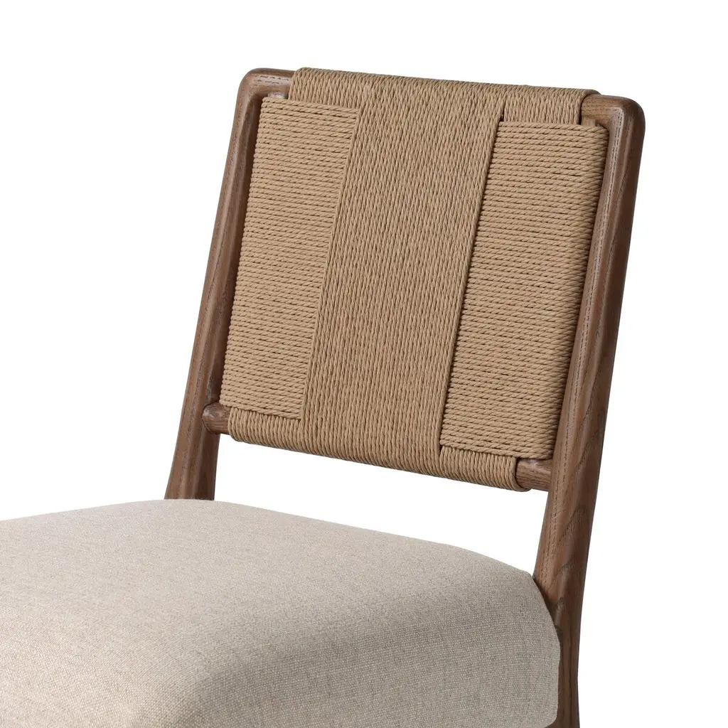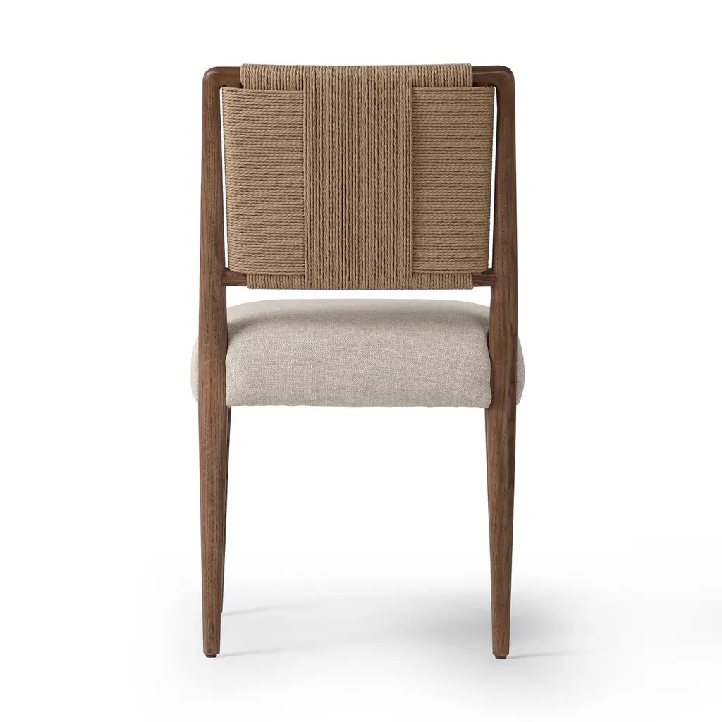Mixed materials elevate the everyday dining chair. Alternating weave patterns on the seat's back add texture and visual interest, while a thick cushioned seat upholstered in high-performance fabric ensures a comfortable sit. Performance fabrics are specially created to withstand spills, stains, high traffic and wear, ensuring long-term comfort and unmatched durability.