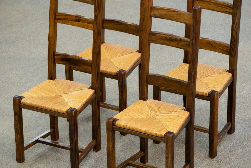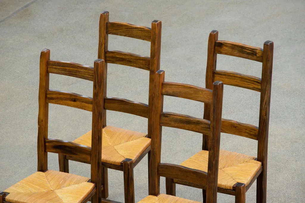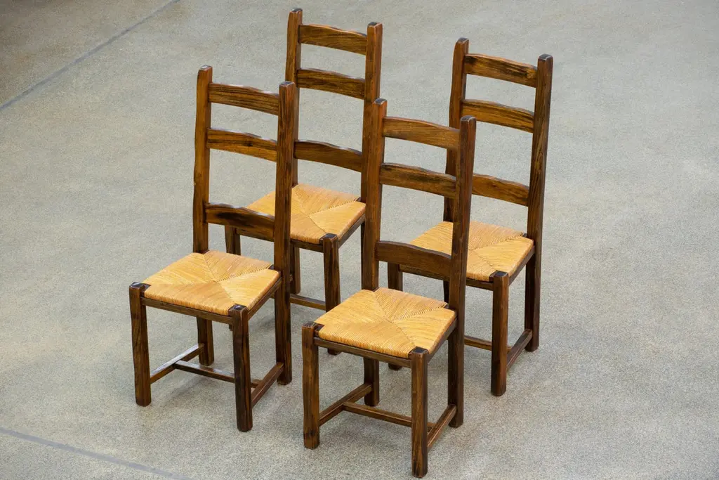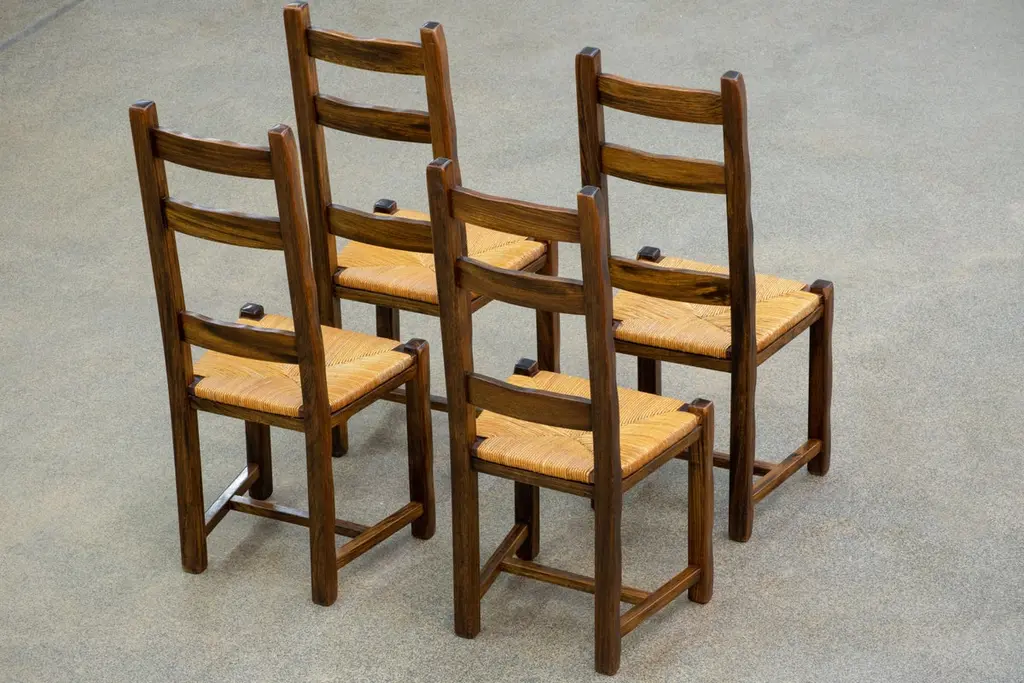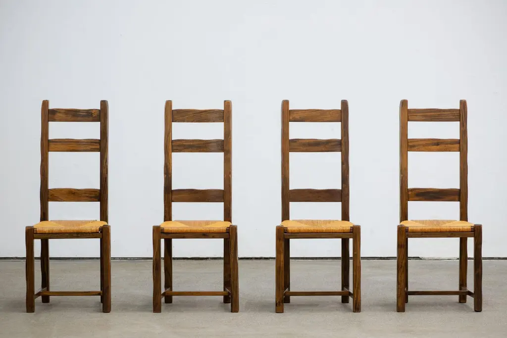 Rustic Set Of 4 Chairs, Solid Elm, By Olavi Hanninen