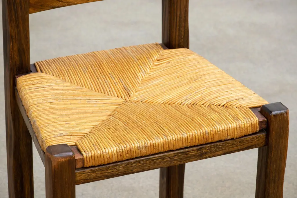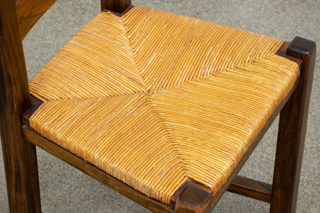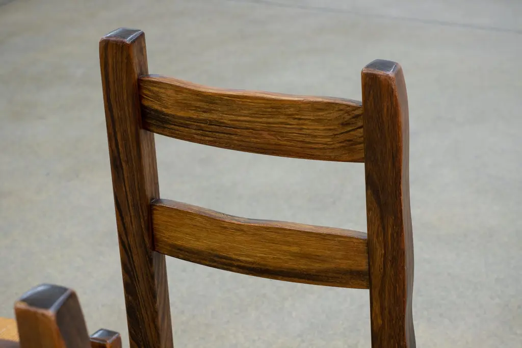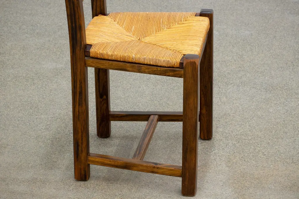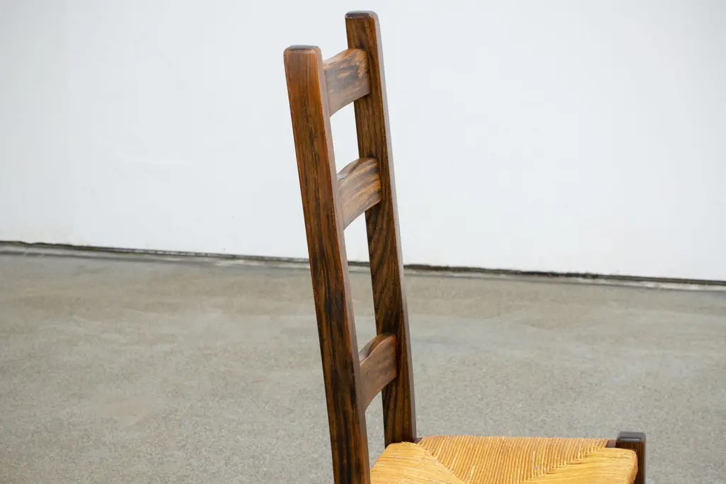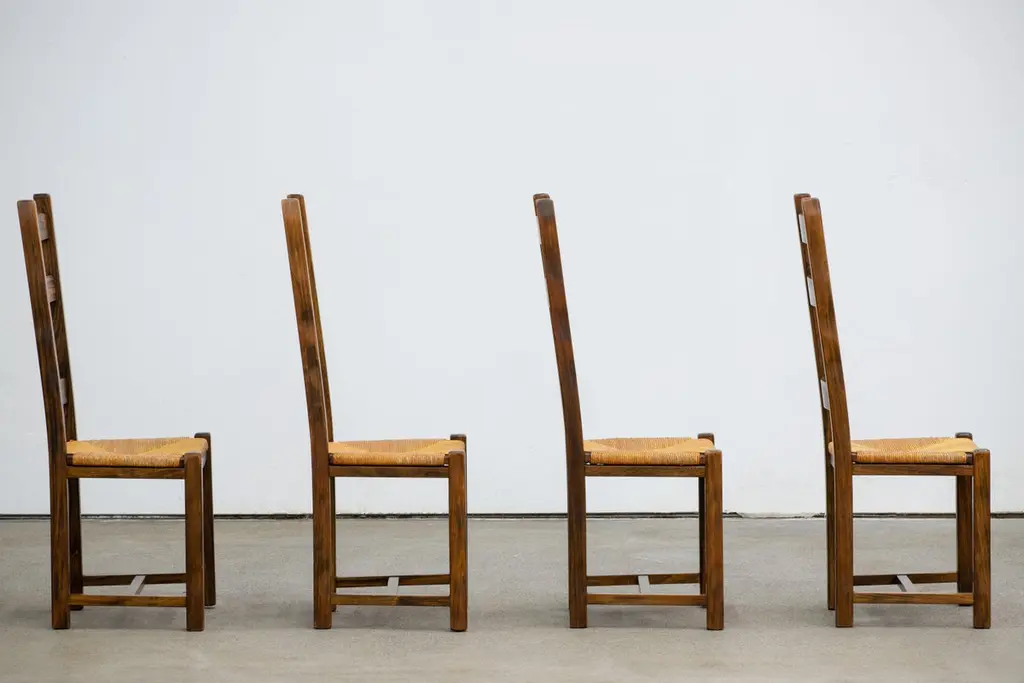 Set of four high back Rustic and Brutalist blended Olavi Hanninen chairs in solid Elm.The seat can be restored on request.