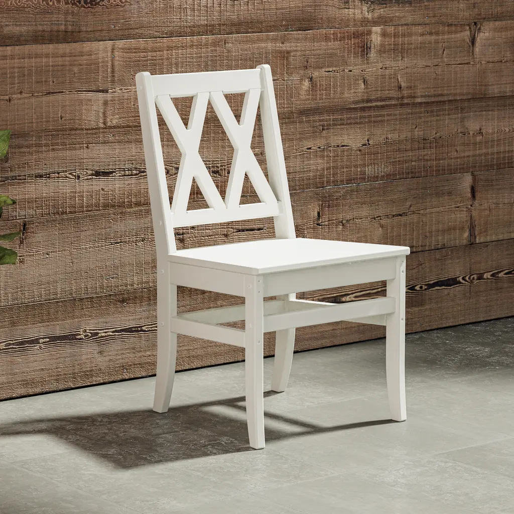 This x-back side chair features a simple construction that lets you appreciate its style while it helps you to create a relaxed atmosphere in your dining room or kitchen. It has straight legs and a wooden seat with a solid rubberwood construction beneath a rich finish tone. The “X” design in the chair back brings style to the piece with a geometric flair that is not overstated. Use this chair with any of the coordinating tables in this collection for a table set that is customized to fit your home and lifestyle.