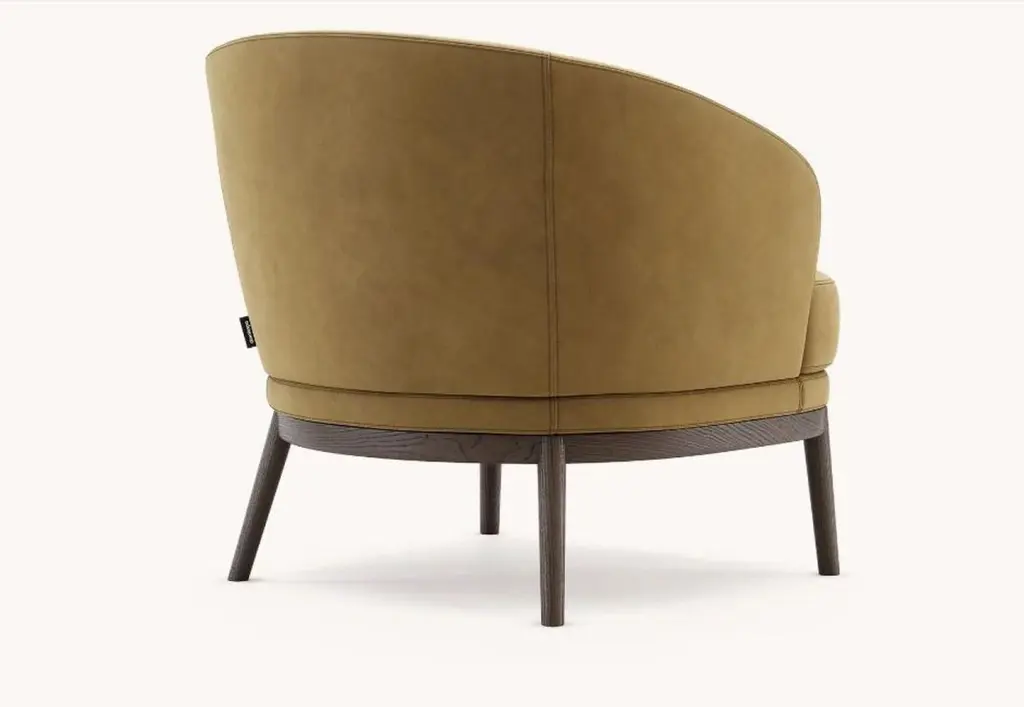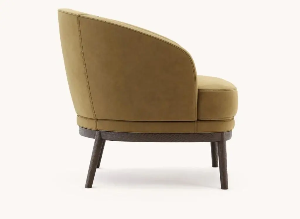 Ruth armchair by DomkapaMaterials: Microfiber, Fumé Stained Ash.Dimensions: W 82 x D 78 x H 80 cm.Also available in different materials. Please contact us.Ruth is a harmonious combination of various finishes conceived as an ideal seat both for residential and contract projects. The backrest and seat flow uninterruptedly into the armrest to create moments of great relaxation. The wooden base, which can be customized into metallic finishes, combines elegance and comfort. There are two lines stitched across the back for high resistance and slender design. This piece can be combined with Ruth dining chair in open space concepts and contemporary design projects.Domkapa holds a tremendous passion for detailed stitching, presenting several similarities to the haute-couture philosophy focused on the value of a “made by hand”. Based in Portugal, Domkapa was founded in 2009 as a Private Label. The long and fruitful path, full of experience and achievements inspired the brand’s new identity and independence, in 2017.Domkapa challenges its team to create the perfect daily meeting between design and comfort in each piece of the brand’s collections. Our design team works side by side with the production, and this organic synergy allows the creation of innovative designs.