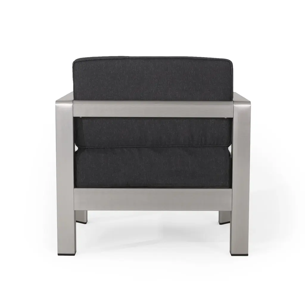 Rutile Outdoor Club Chair With Aluminum Frame And Open Back - Dark Grey