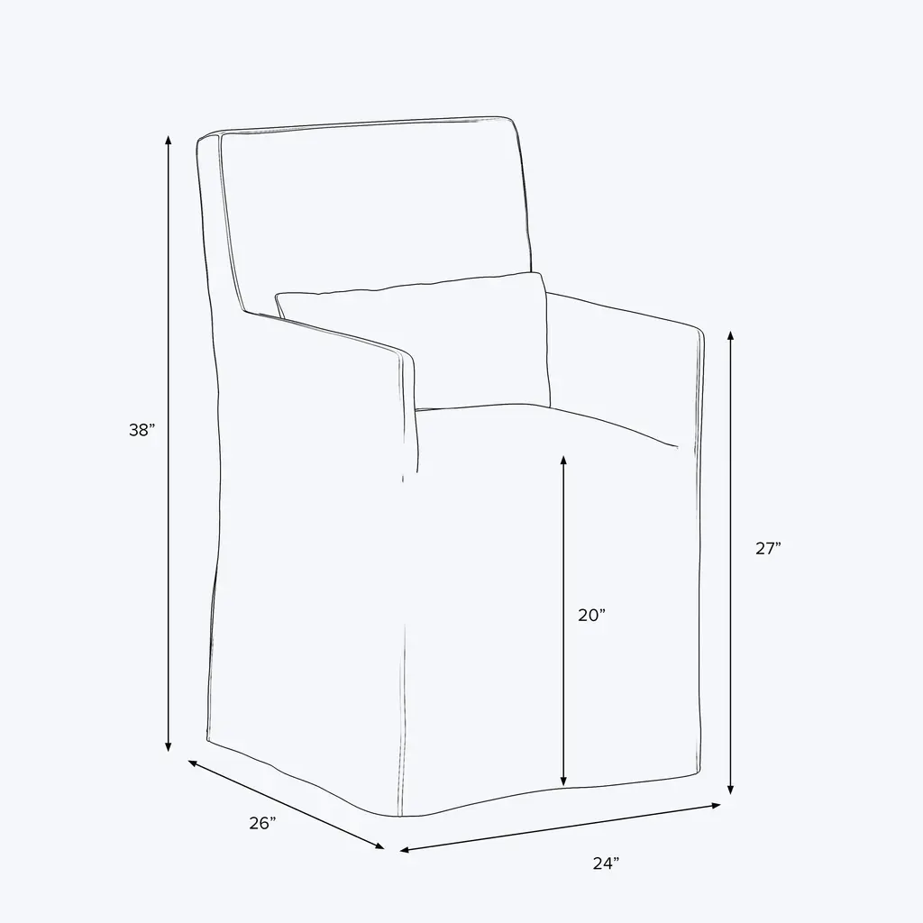 Discover the Rye Slipcover Dining Armchair by Abstrakt. Featuring clean lines and tight tailoring for an elegant, contemporary feel, this elevated armchair can be customized in an extensive selection of stunning shades and refined fabrics. Choose from earthy linens, rich performance velvets, and more. Abstrakt’s custom furniture is made-to-order in the USA and delivered to your home in 6-8 weeks.