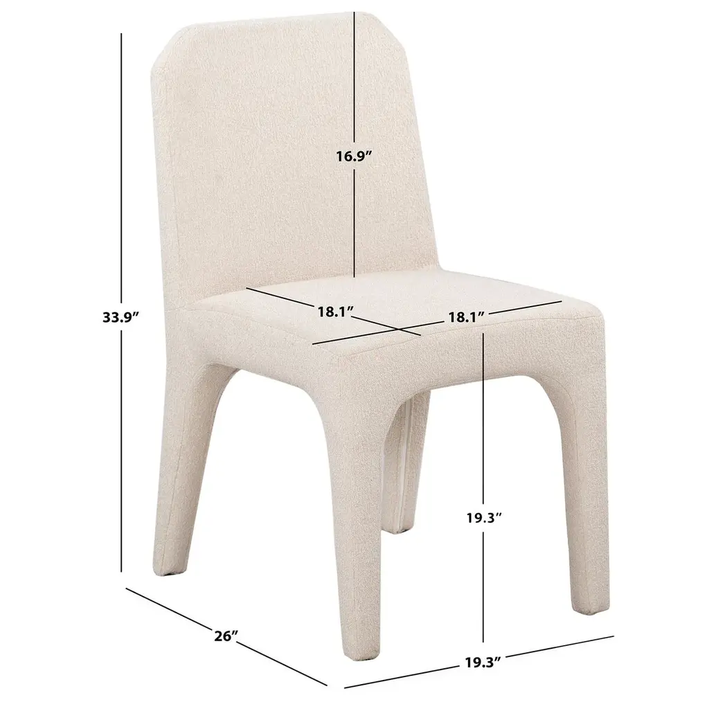 The Alani Boucle Dining Chair blends classic design with modern style. Crafted from sustainable Acacia wood and upholstered in luxurious Boucle fabric, it offers a plush, textured feel and lasting durability. Its neutral tone complements any décor, while its timeless design adds sophistication to your dining space. A perfect mix of comfort, quality, and style, the Alani Boucle Dining Chair is an elegant and enduring addition to any home.