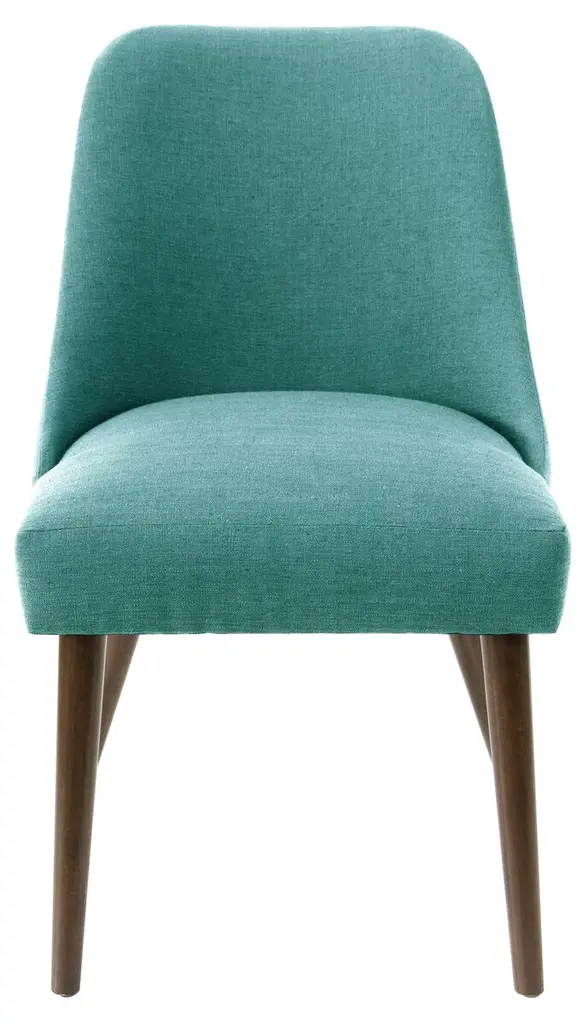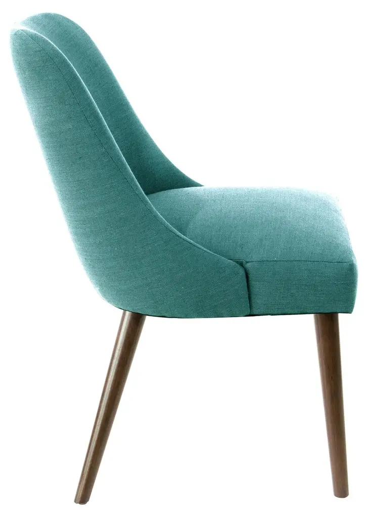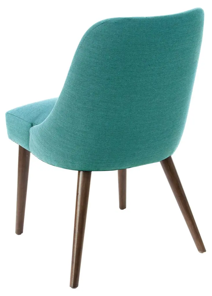 These side chairs enjoy plenty of midcentury-inspired charm with gently contoured seat backs, neutral talc upholstery, and splayed rubberwood legs. Generous padding keeps this look as comfortable as it is stylish. Handcrafted in the USA.