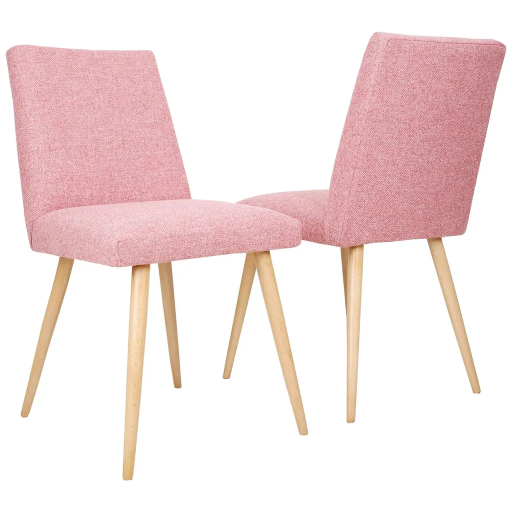 These side chairs enjoy plenty of midcentury-inspired charm with gently contoured seat backs, neutral talc upholstery, and splayed rubberwood legs. Generous padding keeps this look as comfortable as it is stylish. Handcrafted in the USA.