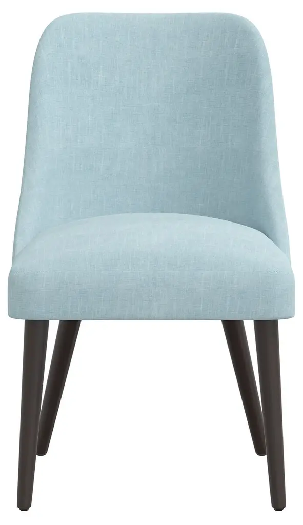 The contoured backs and splayed rear legs of this pair of side chairs pay homage to Mid-Century Modern finesse. The generous cushion padding ensures that they are as comfortable as they are handsome.