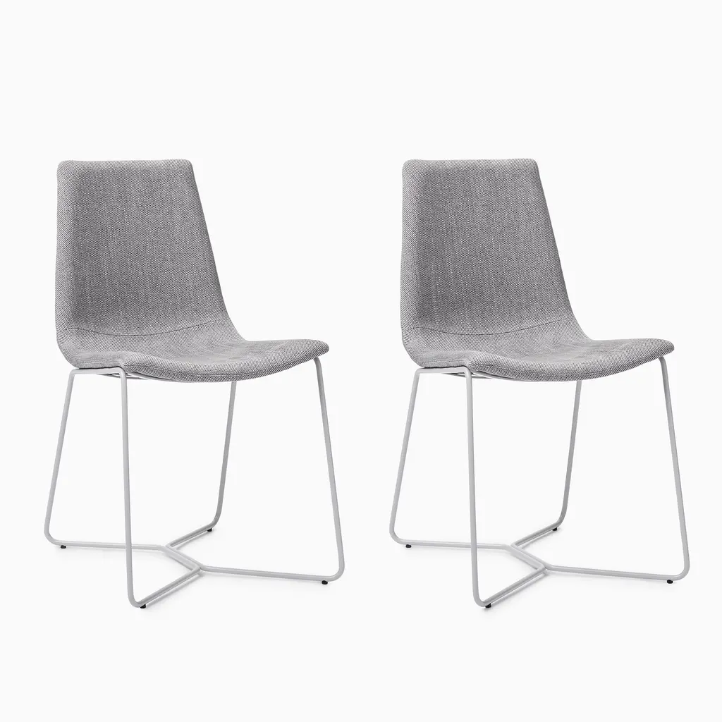 Inspired by nature's geometric simplicity, the Florine collection brings Art Deco design to the twenty-first century. Although delicate in appearance, the strong steel legs and leaf back design make for a powerful statement. The seating itself is composed of fabric over cushions for a sleek finish.