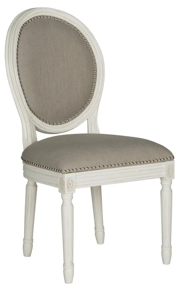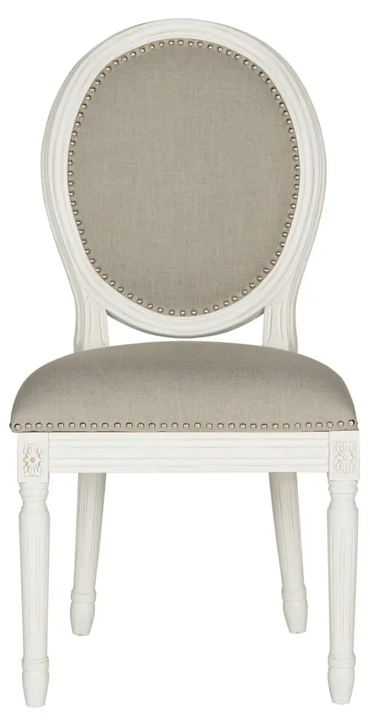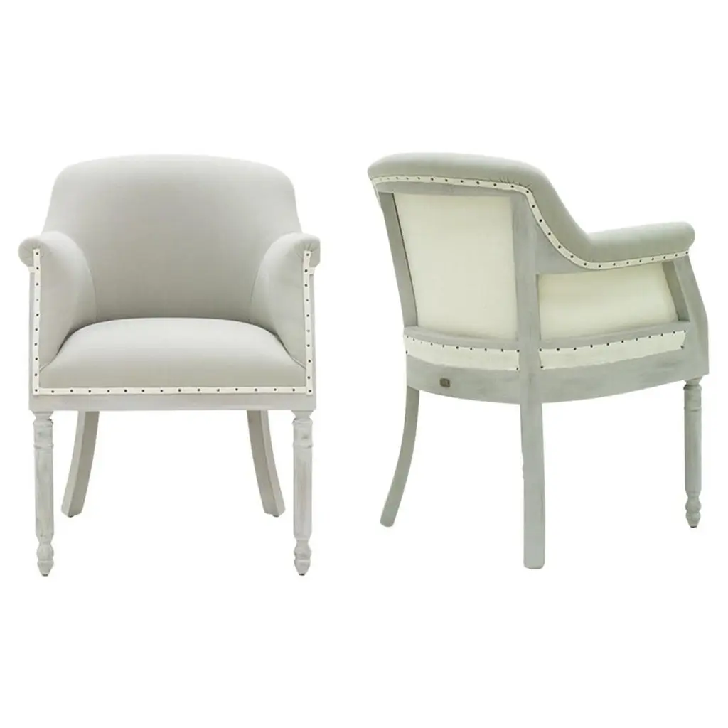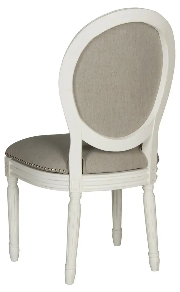 Crafted with a reeded rubberwood-and-plywood frame, these classic side chairs are both stylish and sustainable. Featuring linen upholstery and a sleek nailhead trim, they offer a timeless appeal.