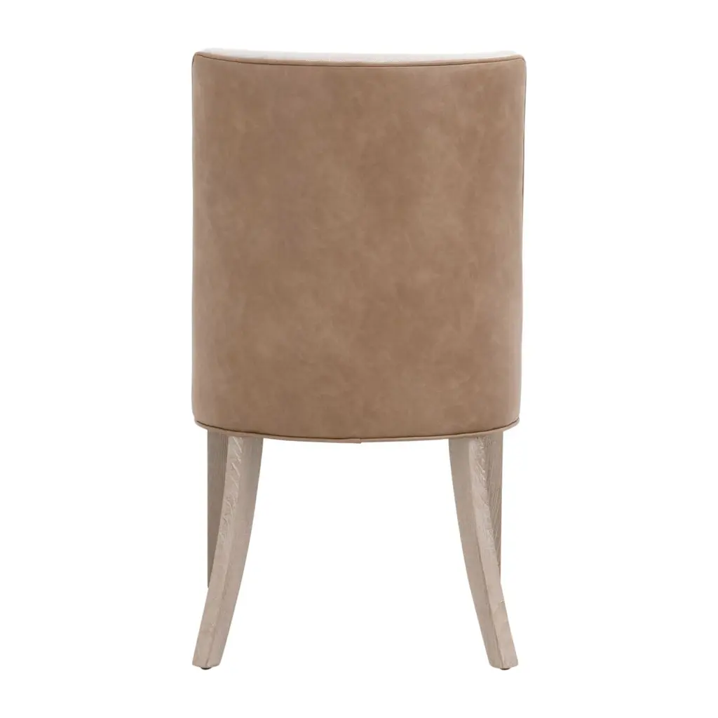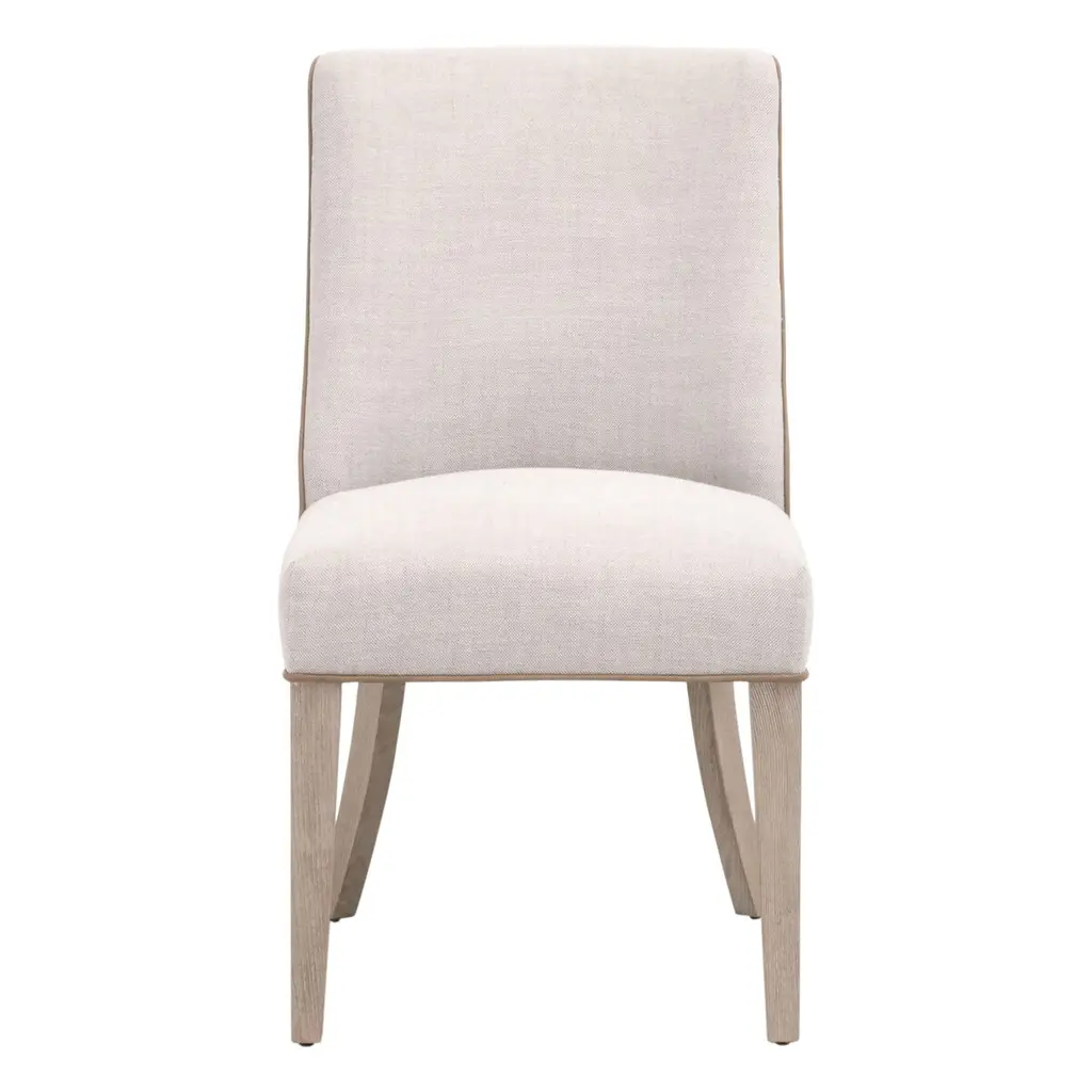 The James Dining Chair encompasses a seamless fusion of transitional style and exceptional comfort. The legs are expertly crafted from solid wood, complementing the striking design of the seat and seat back. These contrasting materials achieve a flawless balance of timeless elegance and modern design. The contrasting edge piping detail adds a touch of sophistication, while the sturdy solid wood legs provide unwavering stability and durability. With generous dimensions measuring 19.5” wide, 26.5” deep, and 36.5” high, with a welcoming seat height of 20 inches, this chair offers not only an inviting place to sit, but also a stylish statement to enhance your dining space.