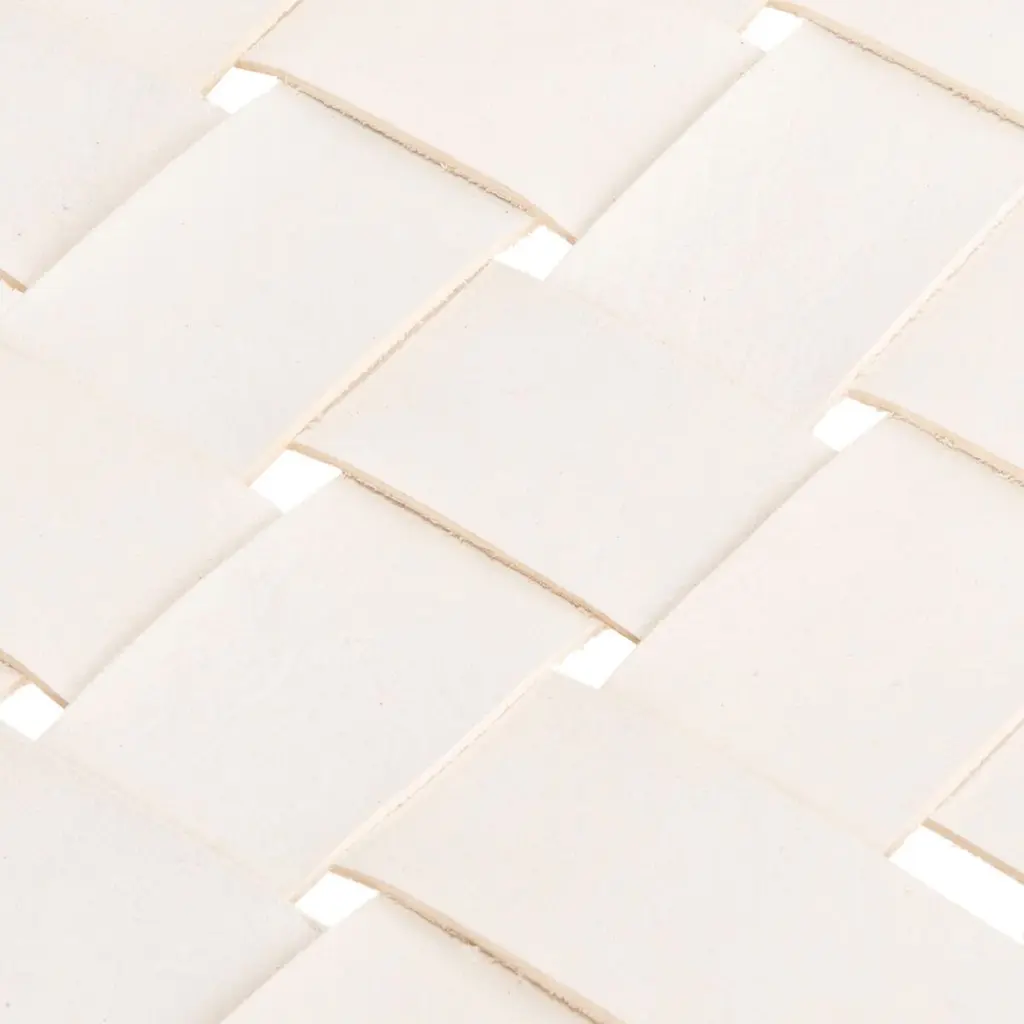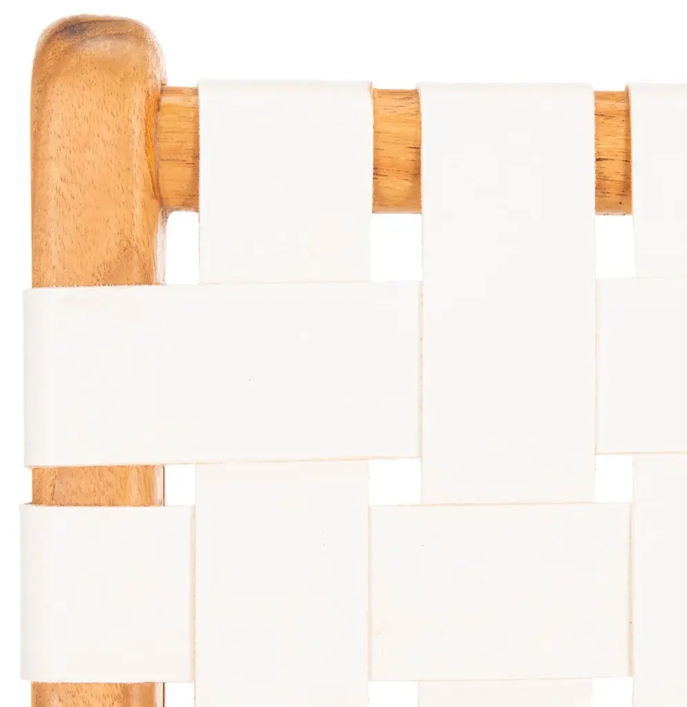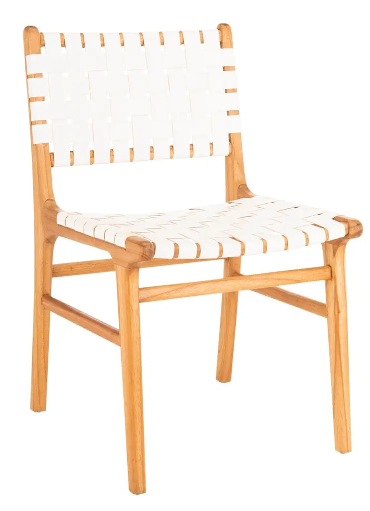 Drawing inspiration from Scandinavian designs, these chairs pair woven leather-strap seats and backs with natural wood frames.