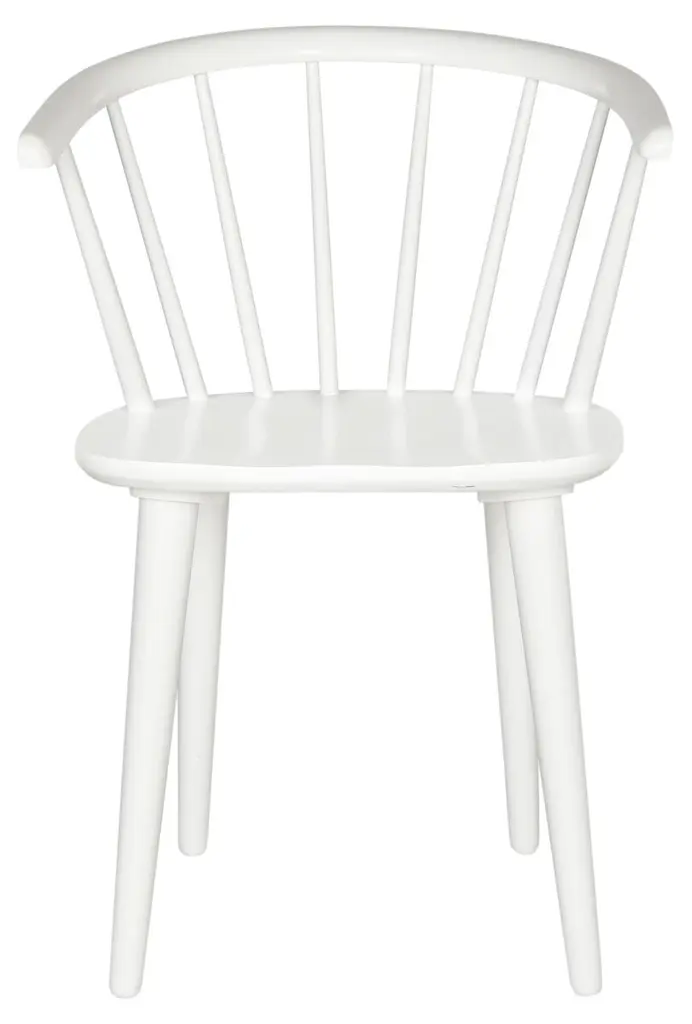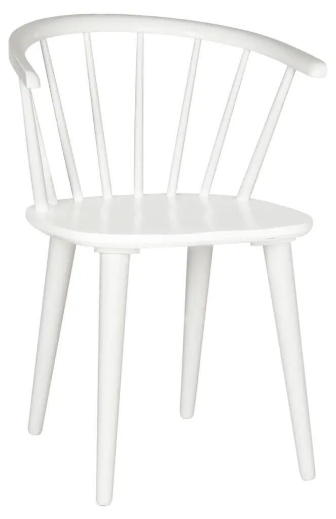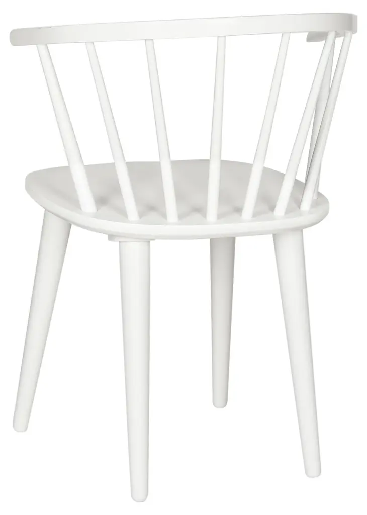 These chairs are crafted from durable, eco-friendly rubberwood, featuring a spoked back and barrel silhouette with tapered legs. Their design ensures versatility, making them a stylish addition to any space.