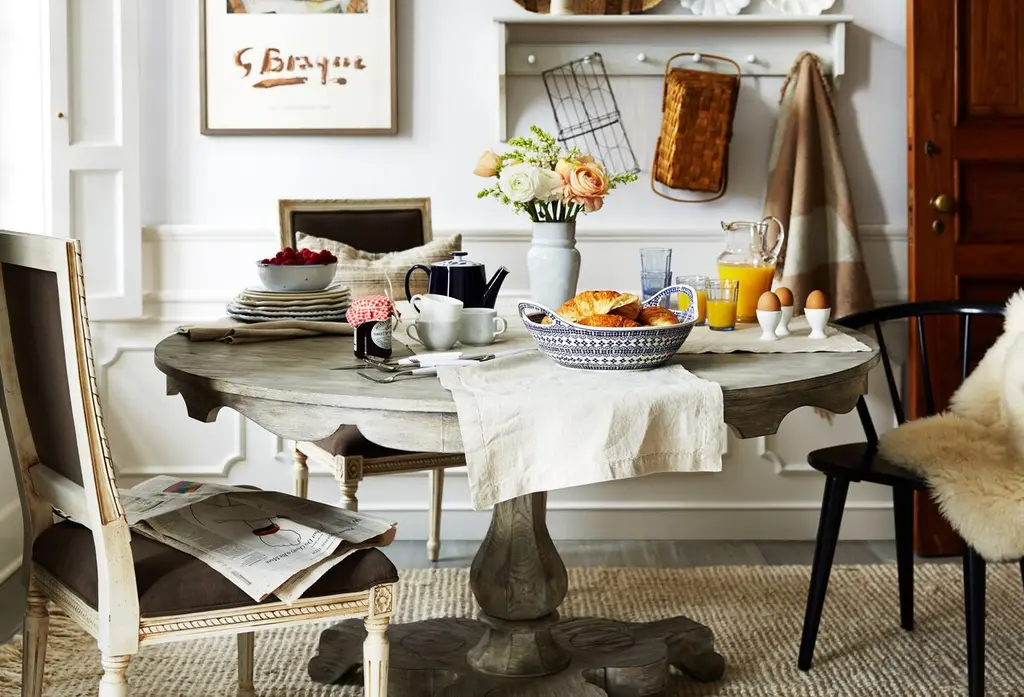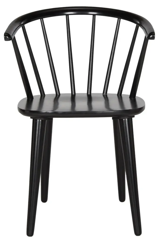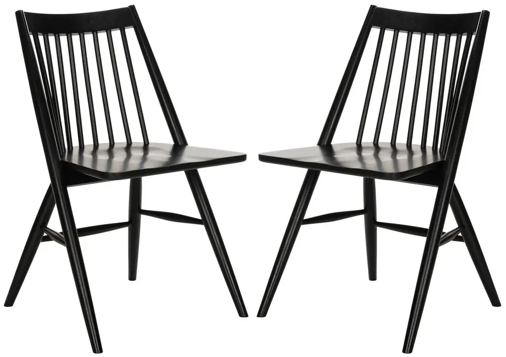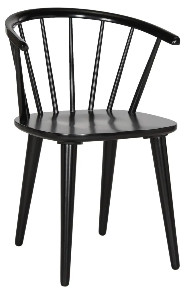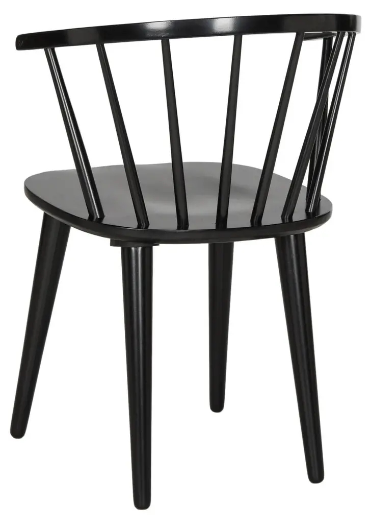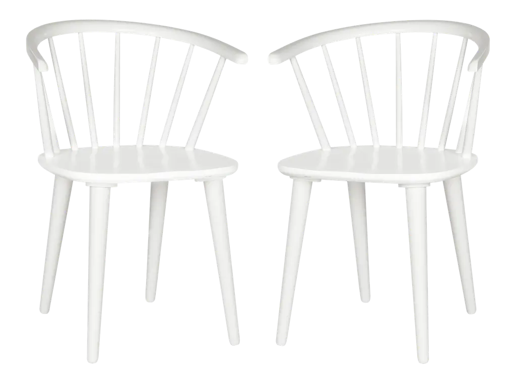 These chairs are crafted from durable, eco-friendly rubberwood, featuring a spoked back and barrel silhouette with tapered legs. Their design ensures versatility, making them a stylish addition to any space.