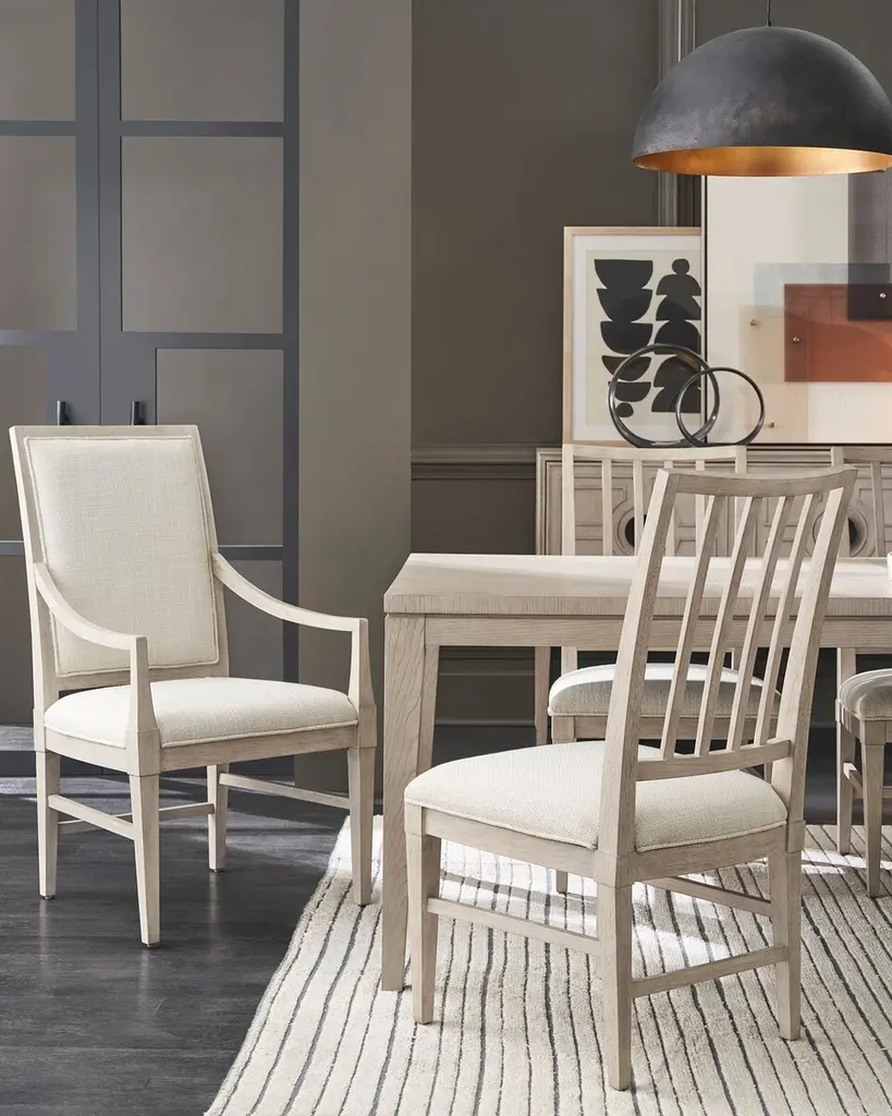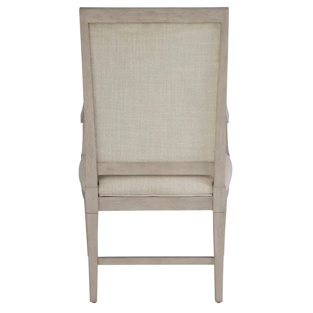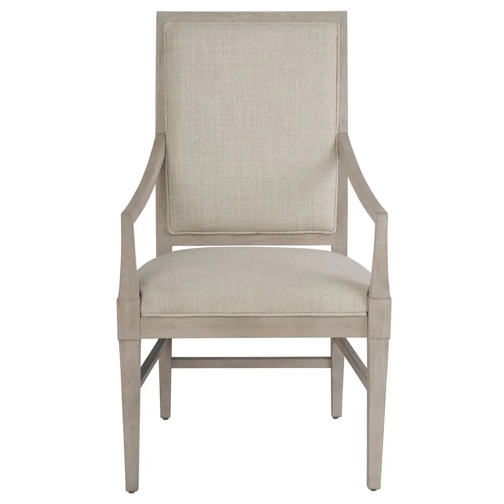 The Kyna Upholstered Arm Chair stands as a statement piece with its plush seating and graceful arms, ideal for anchoring the ends of a dining table or as a stylish accent in any room, effortlessly enhancing the surrounding decor with its well-crafted silhouette.