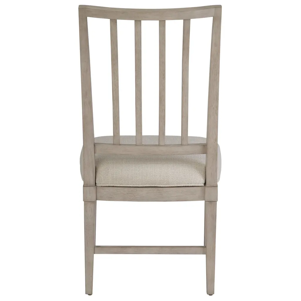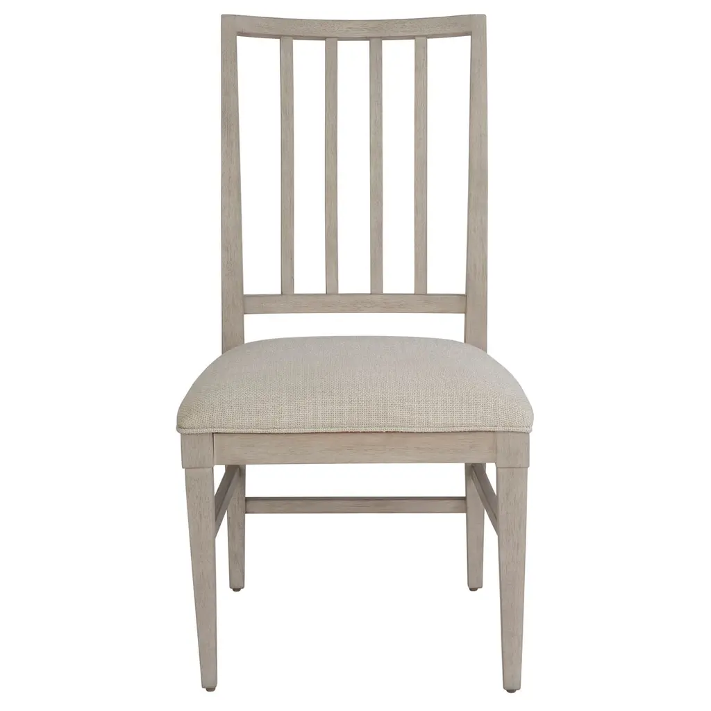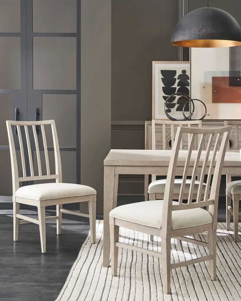 The Kyna Side Chair, available in several refined finishes, features a distinctive back with multiple rods, creating an open and elegant profile that embodies the collection's harmonious blend of traditional and modern design elements.