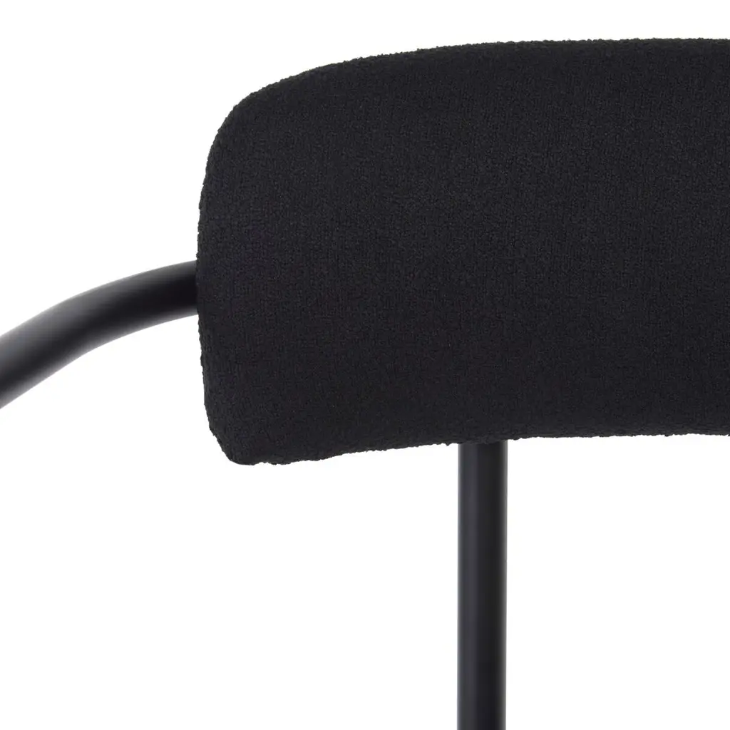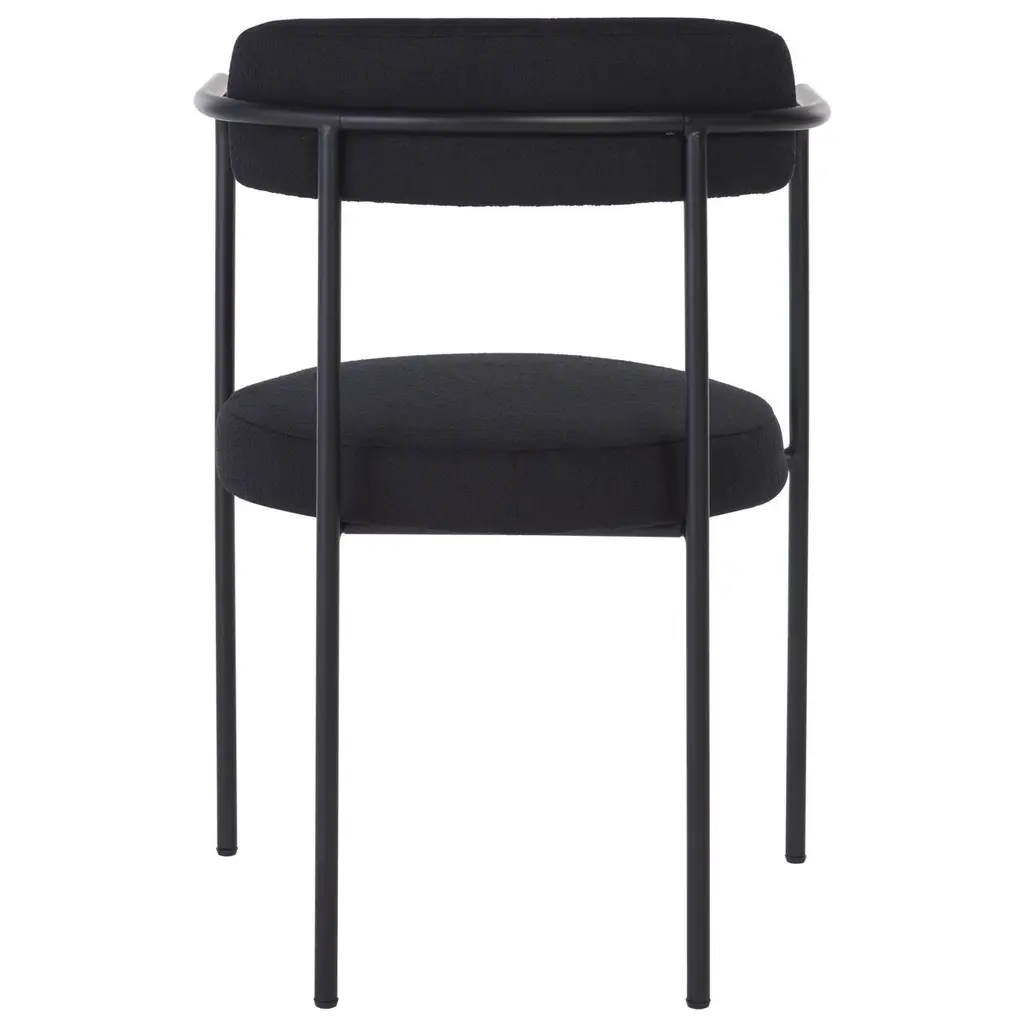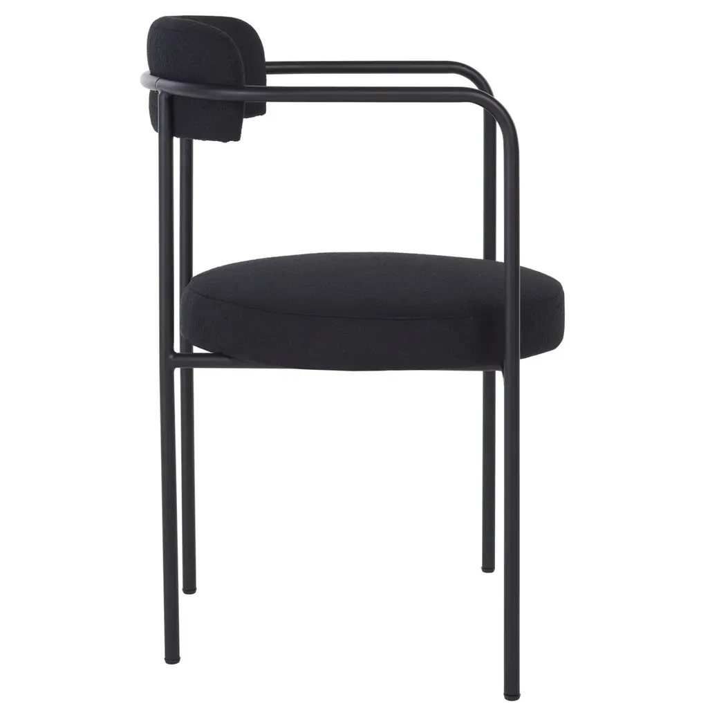 Dine in style and comfort with the Mowry Dining Chair. Beautifully crafted in chic boucle fabric, this dining chair exudes class and sophistication, effortlessly enhancing the aesthetics of your dining space. The solid, black metal legs not only give the chair a stunning contrast but also provide robust support. The chair is further enhanced by a foam interior, offering unparalleled comfort and suiting prolonged seating for long, delightful, dinner conversations. The Mowry Dining Chair - an ultimate combination of style, comfort and durability, is indeed a must-have for everyone who values quality, design, and comfort in their home furniture.