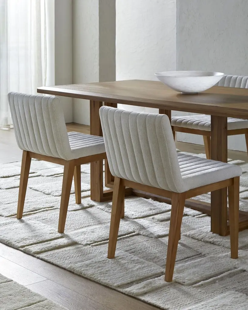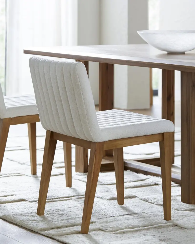 Step into a seaside paradise with the Nylae Dining Chair, designed to transport your dining room to a coastal retreat. This beachy coastal-style chair boasts a comfortable seat upholstered in durable polyester, ensuring you and your guests dine in relaxed elegance. The base is made of robust rubberwood for stability that will endure countless meals and conversations. Filled with 50% polyurethane foam, it offers an inviting softness that makes every meal feel like a special occasion. Manufactured in Vietnam, this chair is a sophisticated addition to any dining space looking for a hint of oceanic charm.
