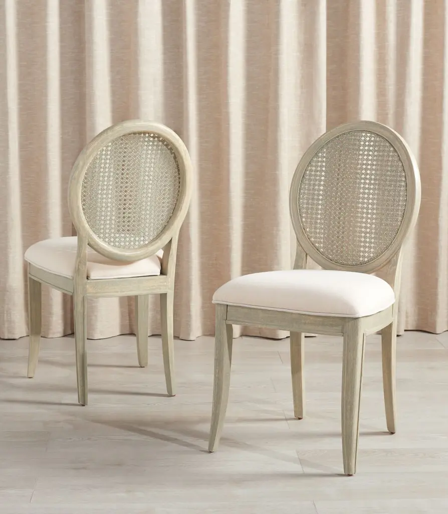 S/2 Rosen Rattan Back Dining Chairs, Beige/rustic Grey