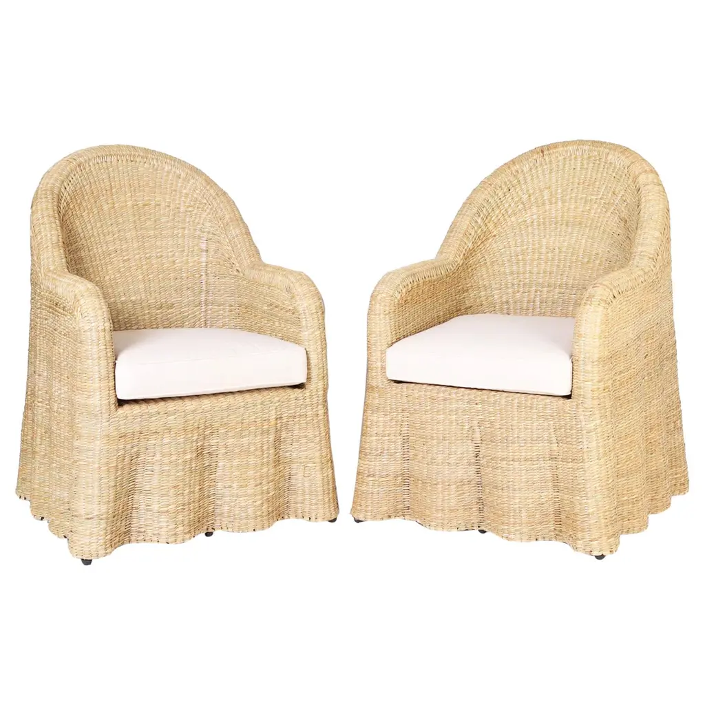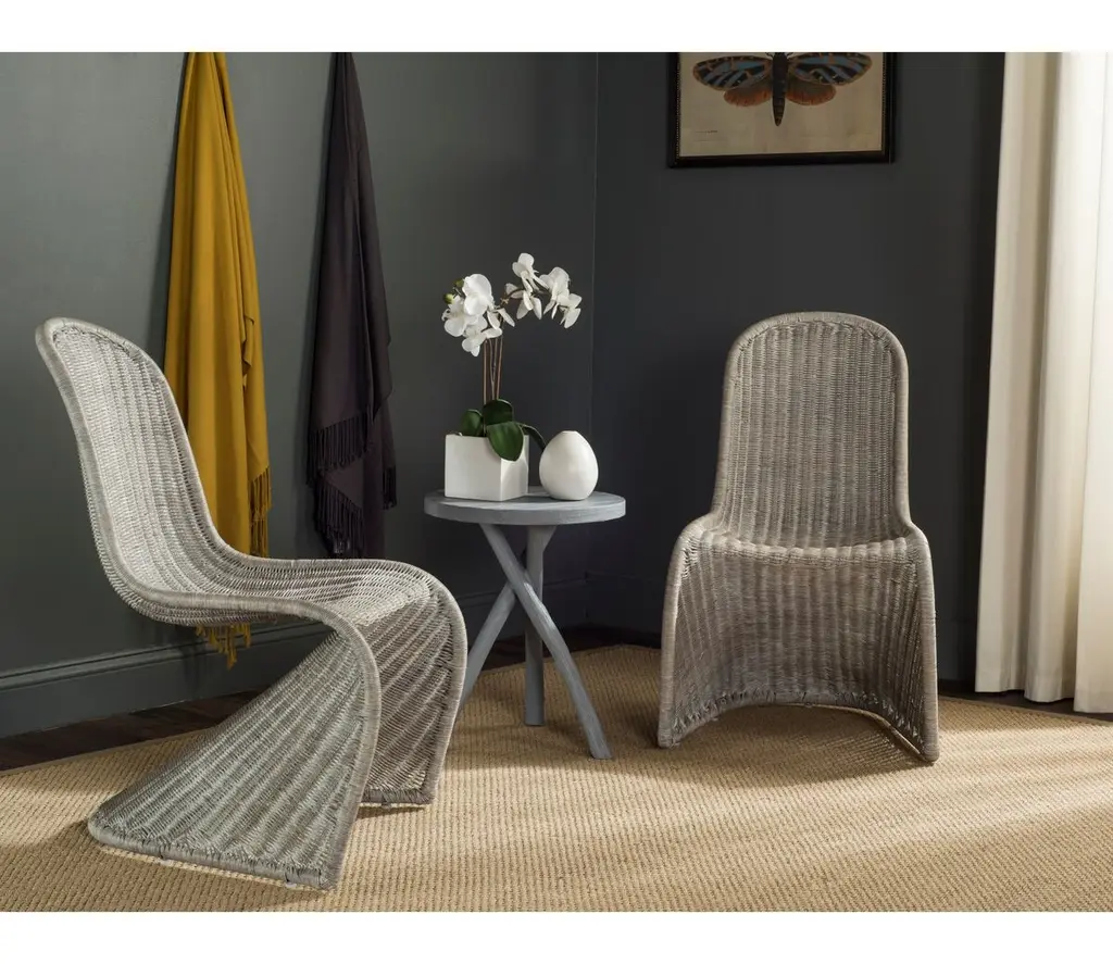 These eye-catching side chairs feature a curvy, cantilever silhouette and wrapped rattan detailing, reminiscent of iconic design influences. Crafted with a focus on bold, curvaceous frames, they bring a touch of elegance and style to any space.