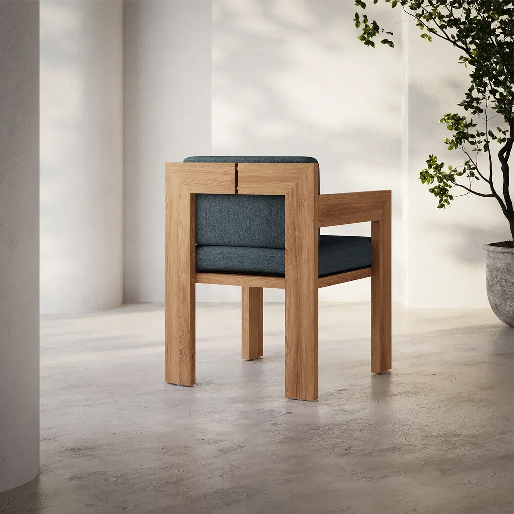 The S2 Outdoor Dining Chair draws inspiration from modern architectural elements, featuring a bold angular back that creates a striking silhouette from every angle. Deep, luxurious cushions rest within the sculptural frame, balancing sharp lines with inviting comfort. Designed for both beauty and function, the S2 redefines outdoor living with a sophisticated presence that transforms any space into a refined retreat.