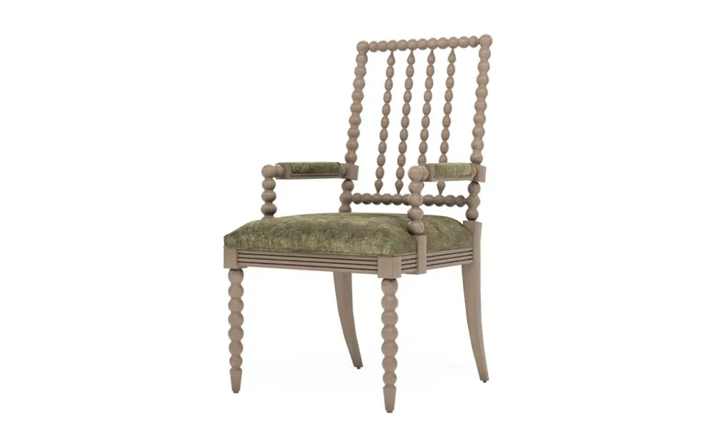 Sabinna Oyster Shell Textured Knit Driftwood Dining Arm Chair