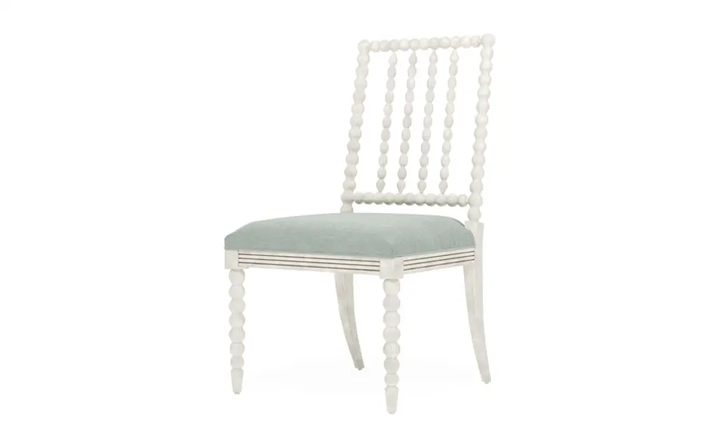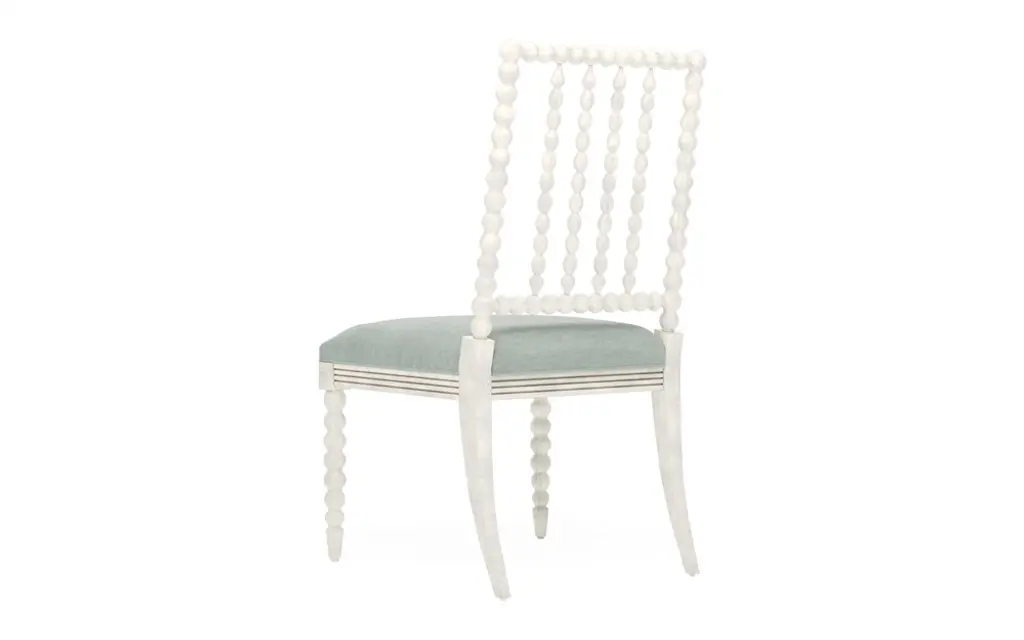 Sabinna Sea Mist Velvet Vintage White Dining Side Chair
