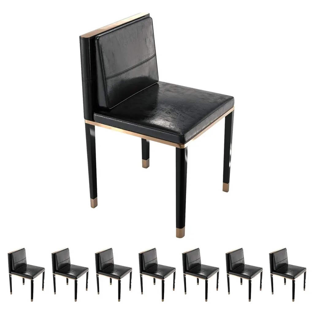 "Safari Xlix" Chair, Set Of Eight, With Bronze & Tailor Made Leather, Istanbul