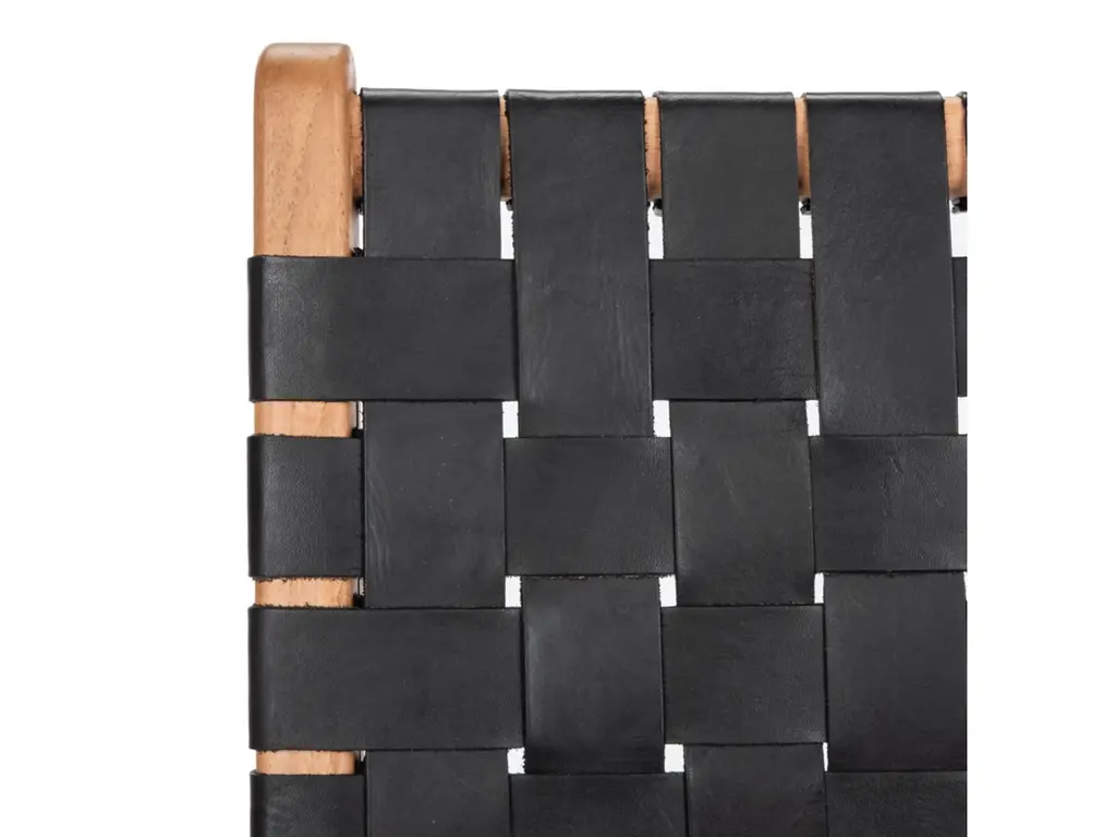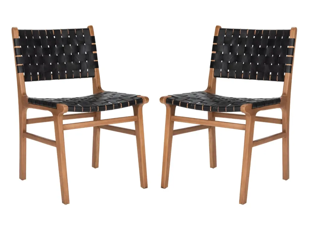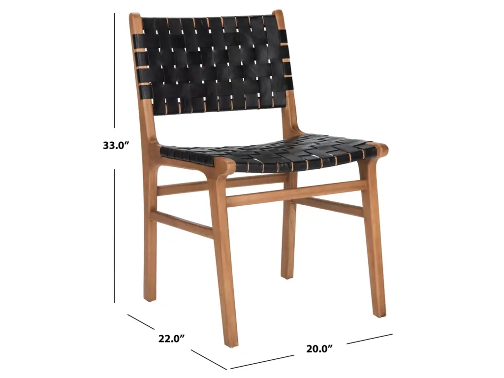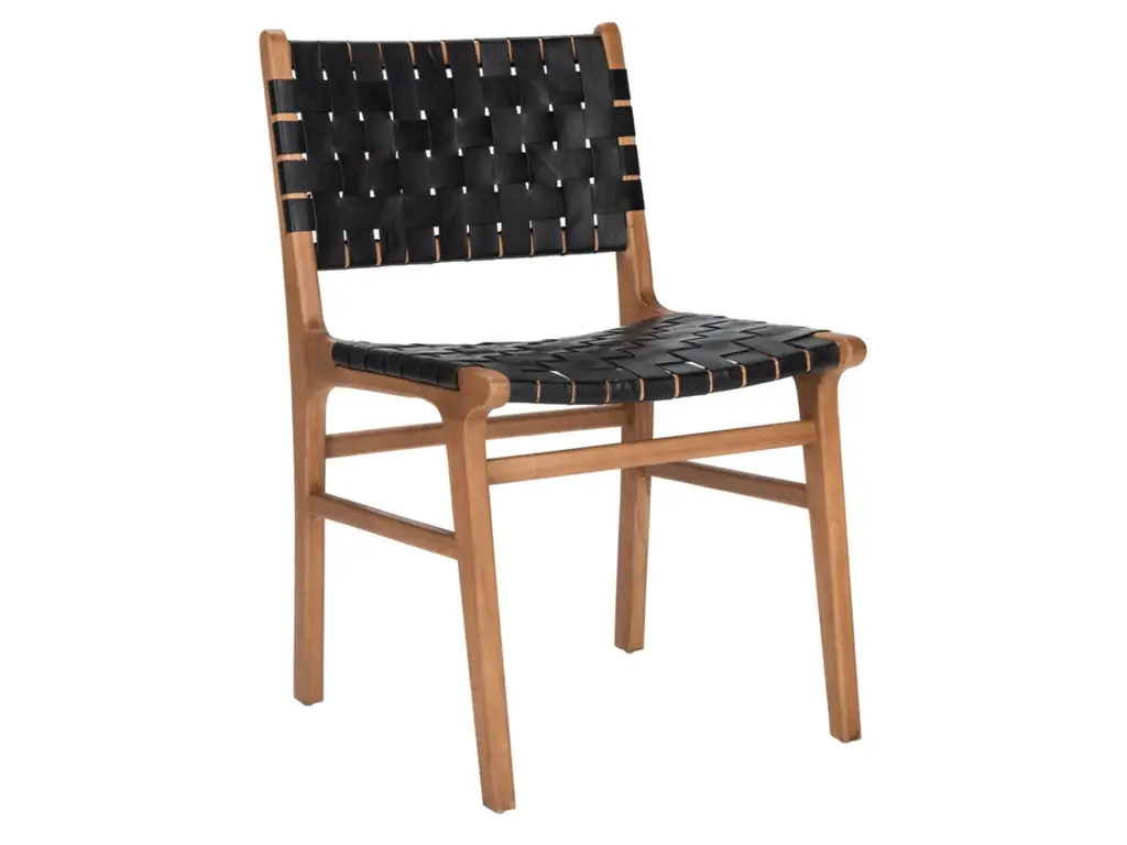 Bring the clean lines and warmth of Scandinavian style to the dining room with this contemporary woven leather dining chair. Perfect for minimalist or transitional décor, its luxurious black leather and natural wood finish bring elegance to the table.