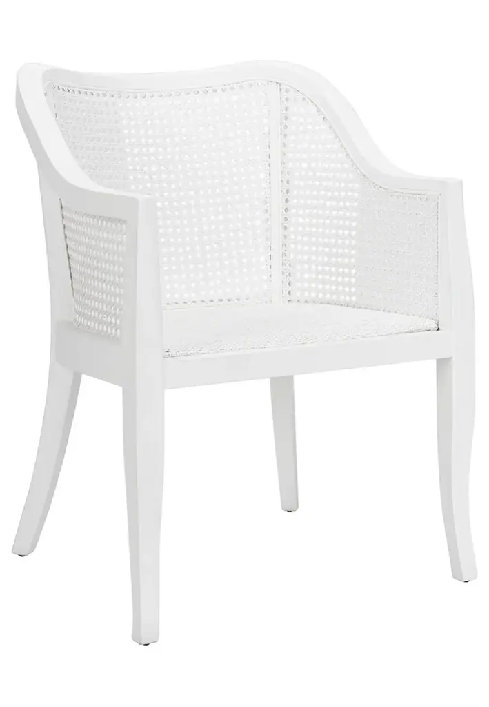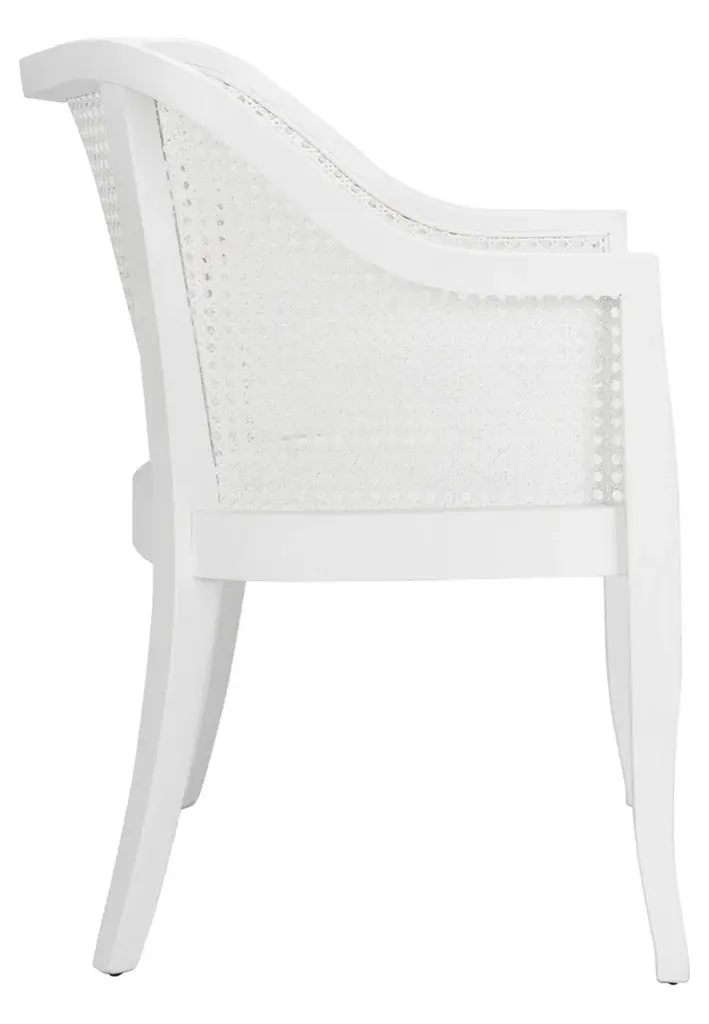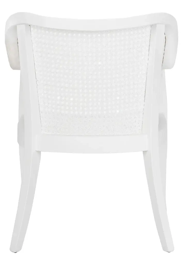Defined by its extraordinary craftsmanship, this contemporary Maika Dining Chair instantly upgrades any dining room. The gentle curves of Maika's clean white wood frame provides a beautifully juxtaposition to its matching white cane details.