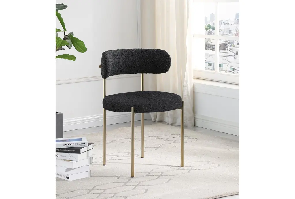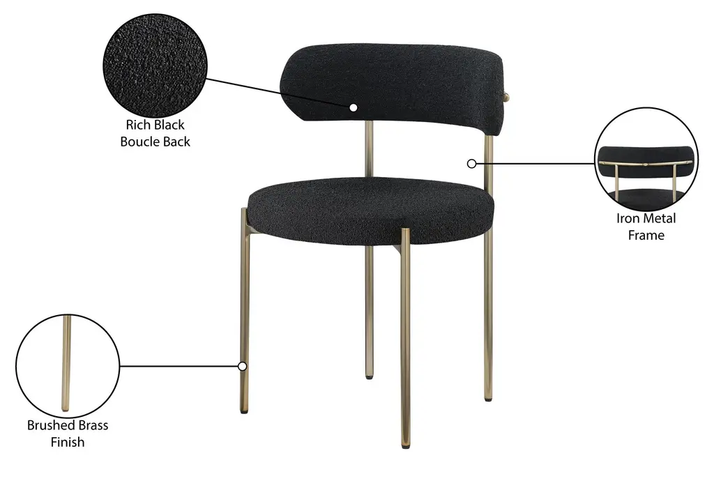 Sagen Black Boucle Upholstered Dining Chair With Silver Leg Frame Set Of 2
