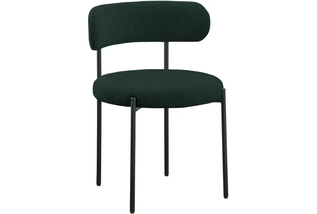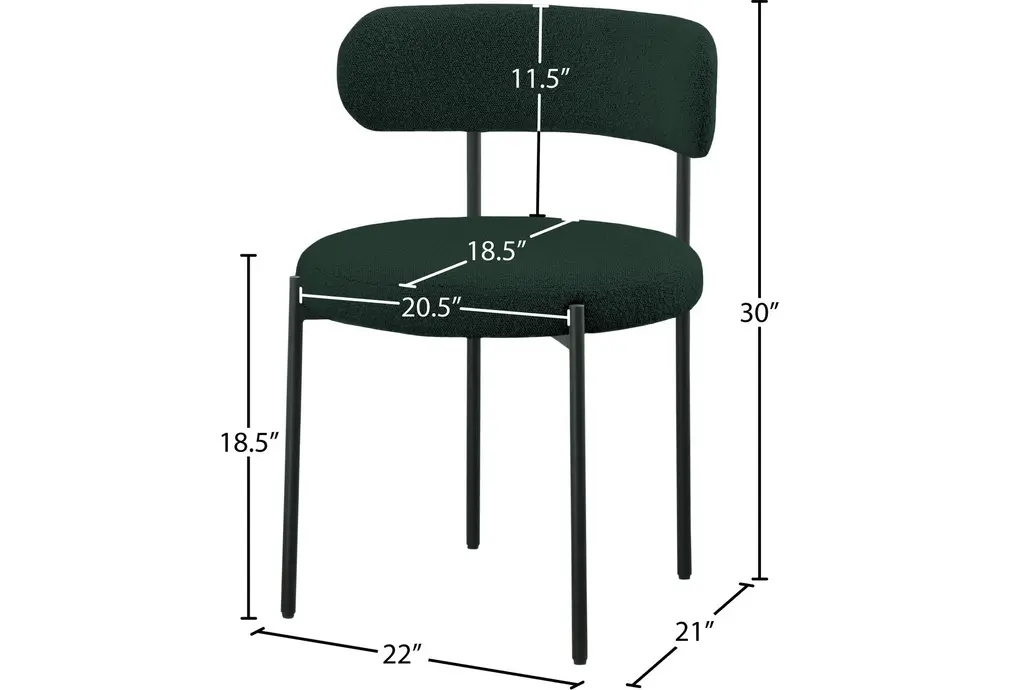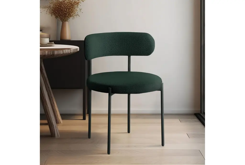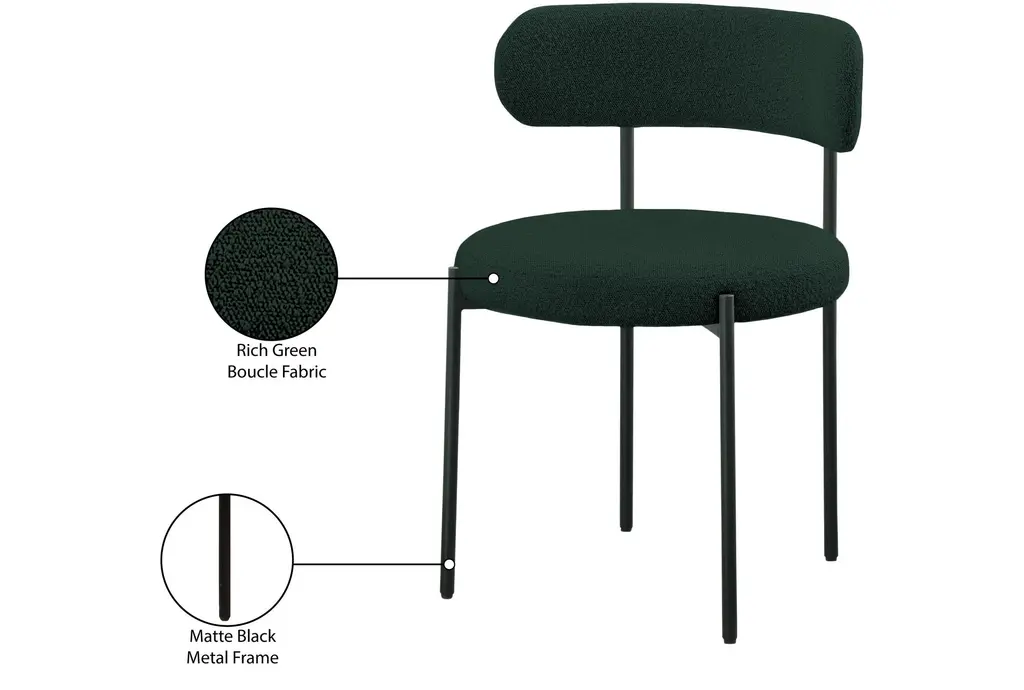 Sagen Green Boucle Upholstered Dining Chair With Black Leg Frame Set Of 2 | Armless