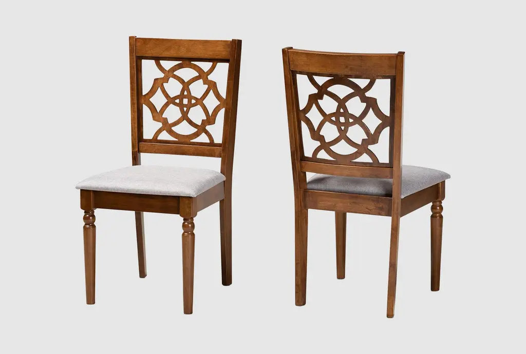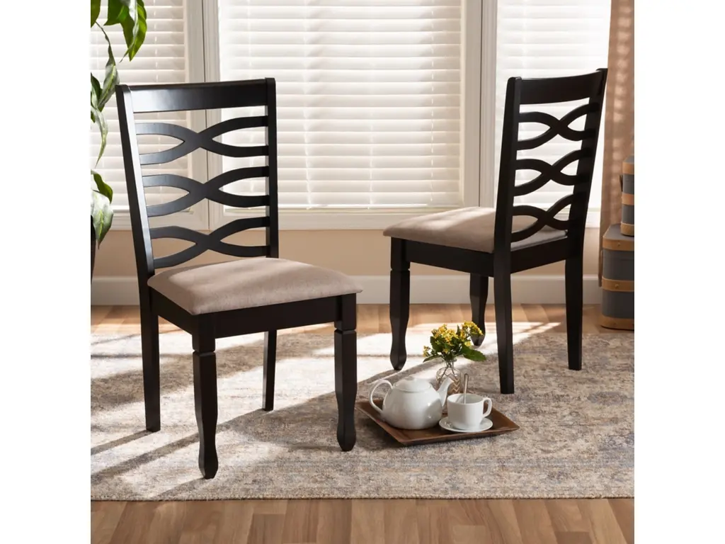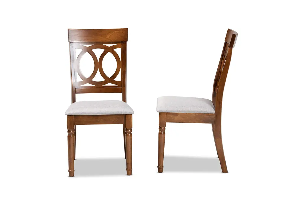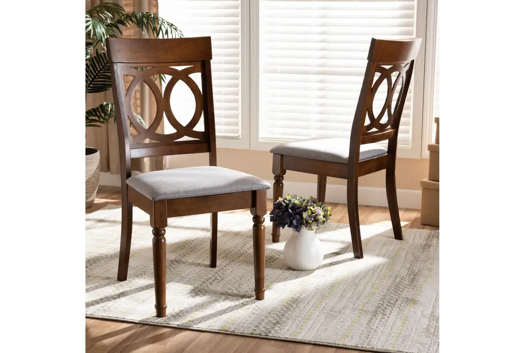 Enhance your dining experience with the Sandy Grey Fabric Upholstered + Walnut Brown Finished Wood Dining Chair Set Of 2. These modern chairs feature a sophisticated design that combines grey fabric with walnut brown finished wood, creating a stylish and comfortable seating solution for your dining room or kitchen.