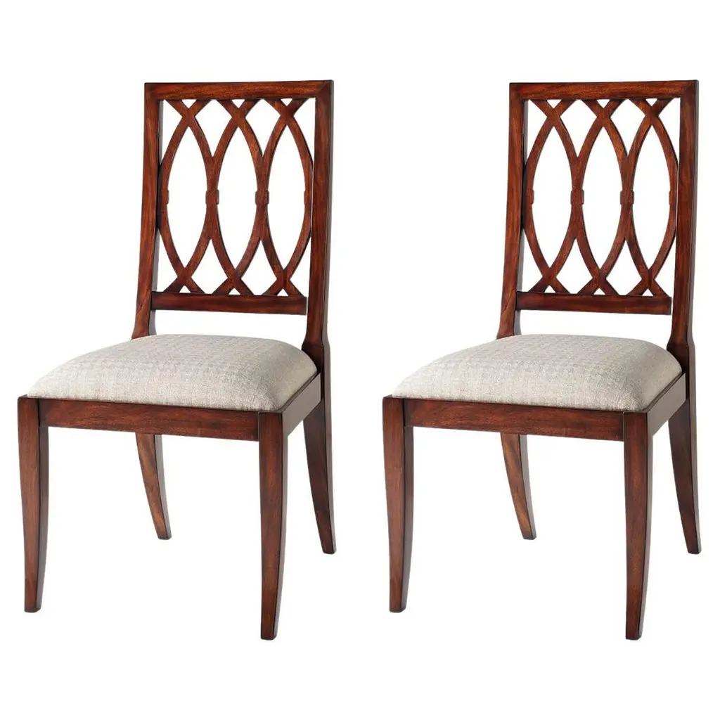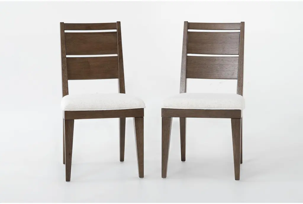 Sandy Grey Fabric Upholstered + Walnut Brown Finished Wood Dining Chair Set Of 2 | Armless