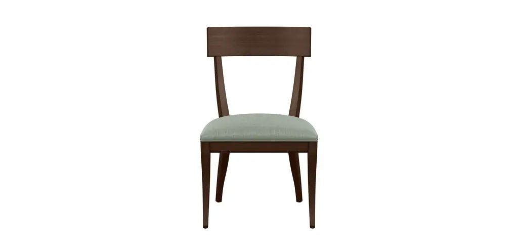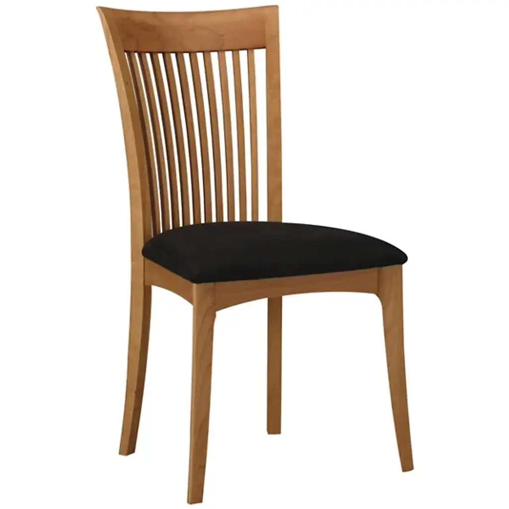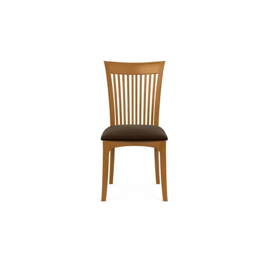 A comfortable chair that will fit comfortably into a variety of dining room settings. The Copeland Furniture Sarah Chair has a clean, elegant looked inspired by classic Shaker design. It is made out of solid cherry hardwood and comes in a variety of finishes to coordinate with the leather or microsuede upholstery on the seat.