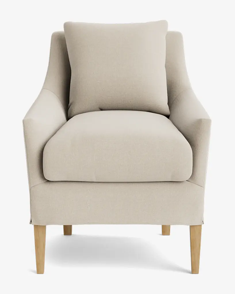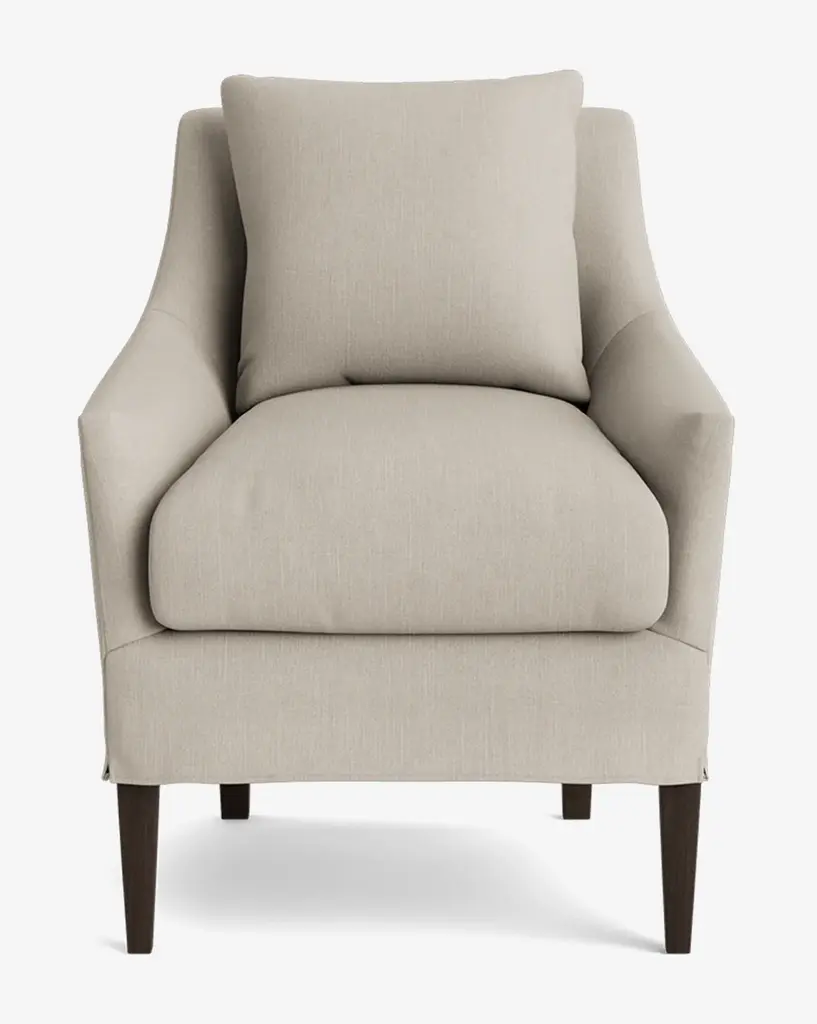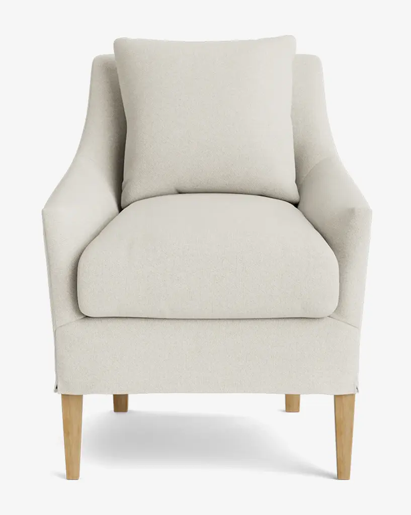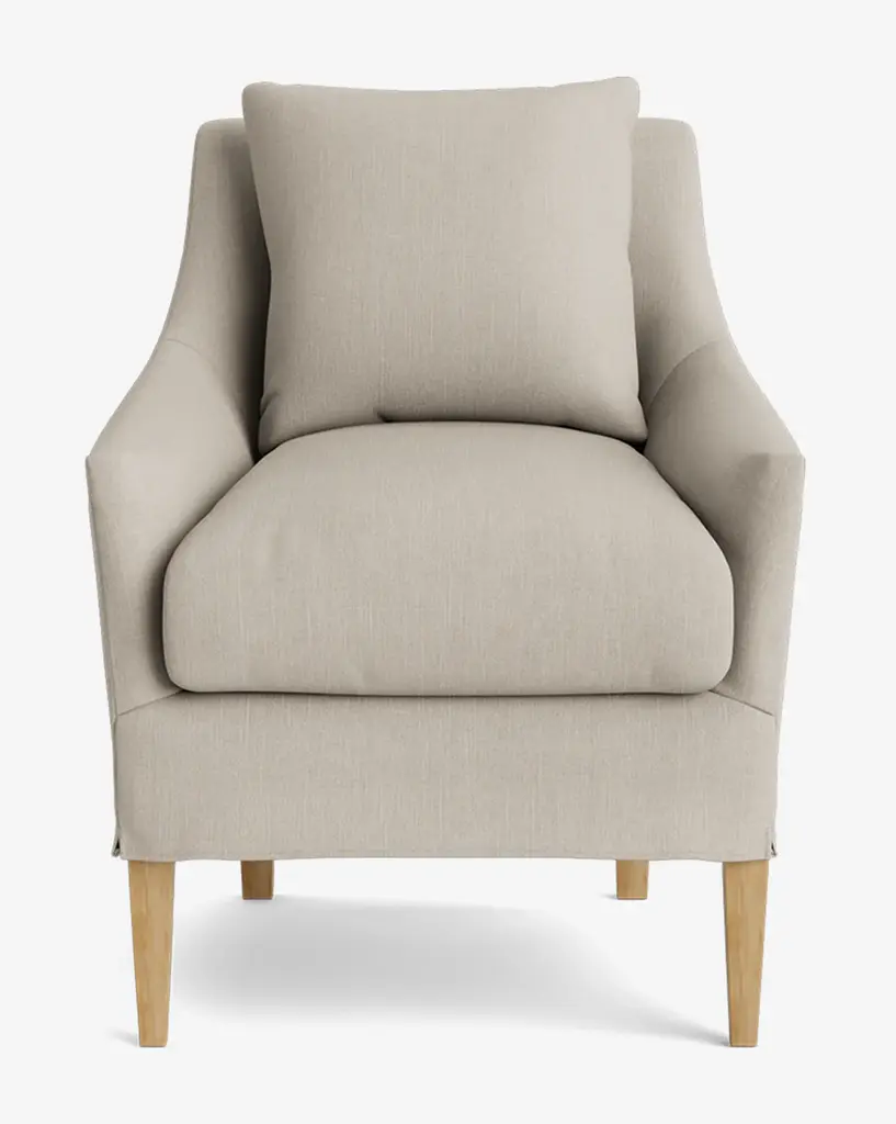 Our Sascha Slipcover Dining Chair is an updated take on a traditional staple. Handcrafted with luxurious comfort in mind, its cushions are tightly filled with a feather blend for a firm yet inviting seat at all times. The slipcover fabric around the base of the chair brings an approachable feel, while the tapered wood legs lend a classic detail to your dining space. Customizable in a wide array of fabrics, you can make this made-to-order piece entirely your own.