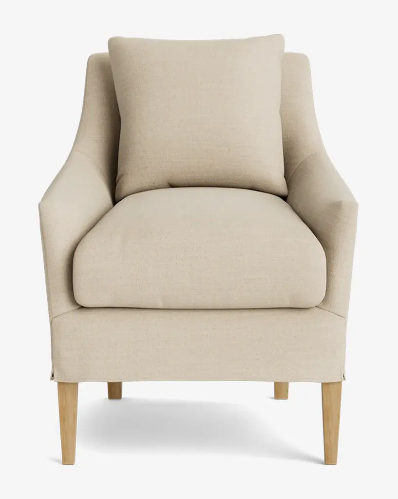 Our Sascha Slipcover Dining Chair is an updated take on a traditional staple. Handcrafted with luxurious comfort in mind, its cushions are tightly filled with a feather blend for a firm yet inviting seat at all times. The slipcover fabric around the base of the chair brings an approachable feel, while the tapered wood legs lend a classic detail to your dining space. Customizable in a wide array of fabrics, you can make this made-to-order piece entirely your own.