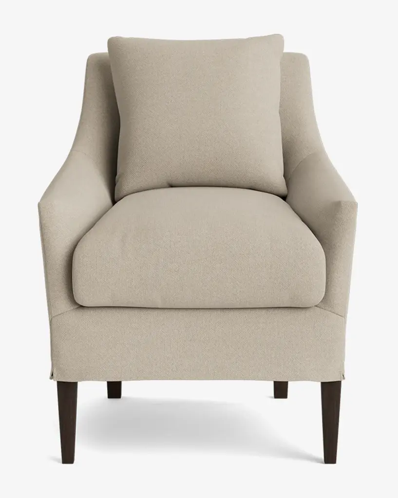 Our Sascha Slipcover Dining Chair is an updated take on a traditional staple. Handcrafted with luxurious comfort in mind, its cushions are tightly filled with a feather blend for a firm yet inviting seat at all times. The slipcover fabric around the base of the chair brings an approachable feel, while the tapered wood legs lend a classic detail to your dining space. Customizable in a wide array of fabrics, you can make this made-to-order piece entirely your own.