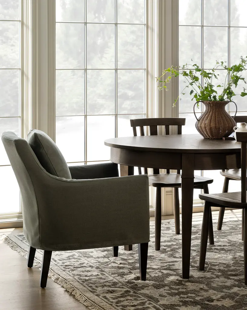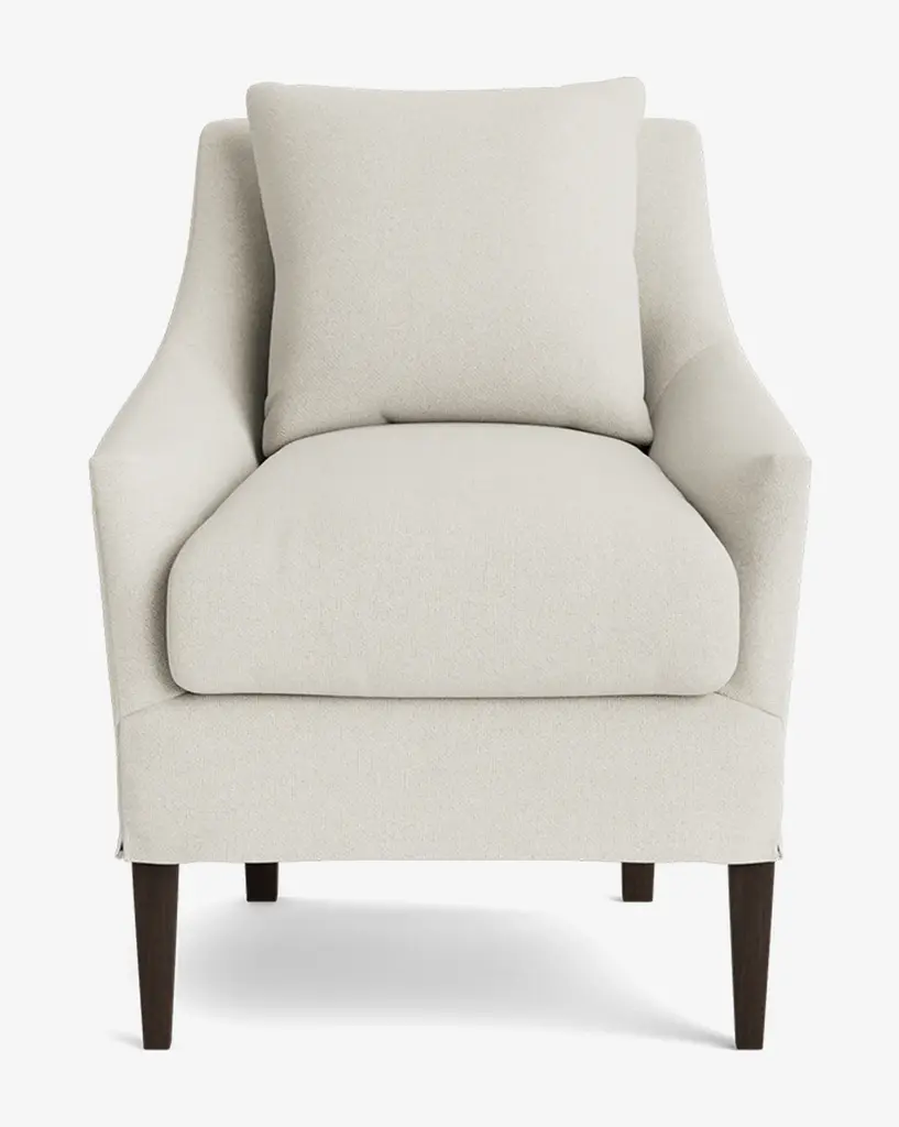 Our Sascha Slipcover Dining Chair is an updated take on a traditional staple. Handcrafted with luxurious comfort in mind, its cushions are tightly filled with a feather blend for a firm yet inviting seat at all times. The slipcover fabric around the base of the chair brings an approachable feel, while the tapered wood legs lend a classic detail to your dining space. Customizable in a wide array of fabrics, you can make this made-to-order piece entirely your own.