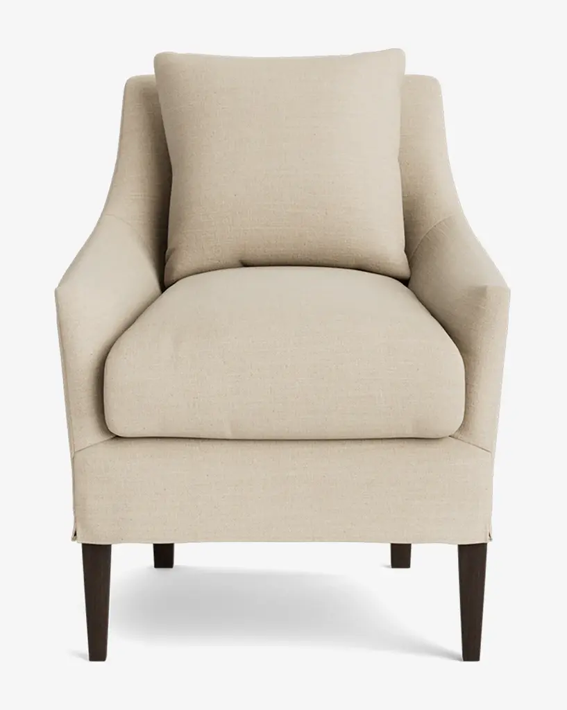 Our Sascha Slipcover Dining Chair is an updated take on a traditional staple. Handcrafted with luxurious comfort in mind, its cushions are tightly filled with a feather blend for a firm yet inviting seat at all times. The slipcover fabric around the base of the chair brings an approachable feel, while the tapered wood legs lend a classic detail to your dining space. Customizable in a wide array of fabrics, you can make this made-to-order piece entirely your own.