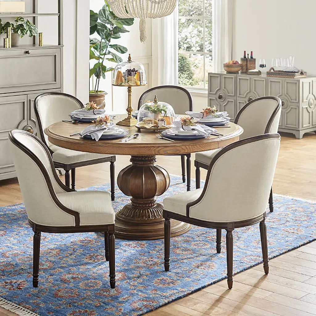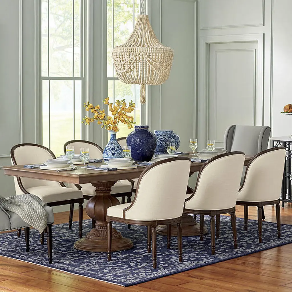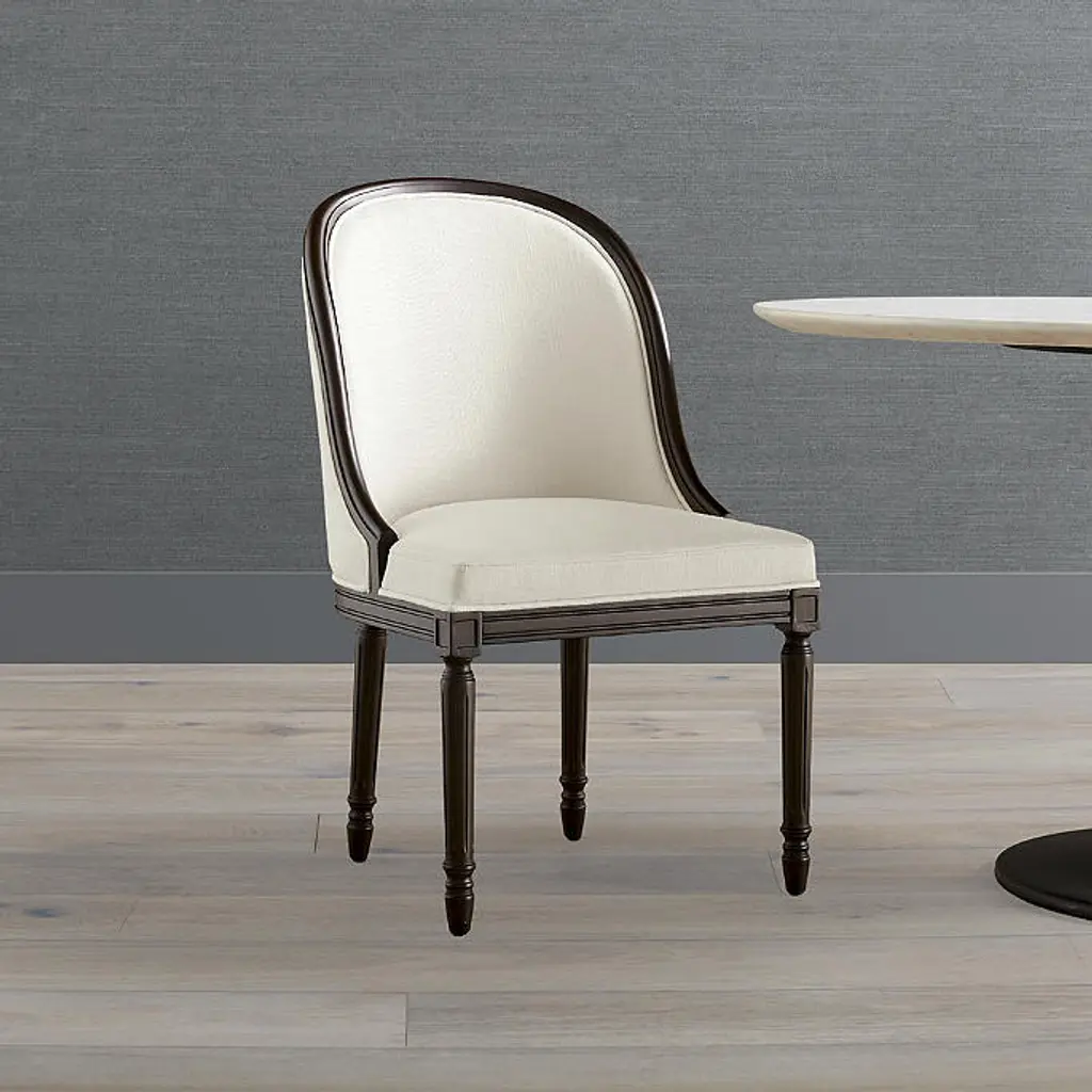Inspired by Louis XIV antiques, our Savoy Dining Chair is a modern take on traditional style that easily complements any decor. Crafted of solid hardwood with a curved back that provides comfortable support that's perfect for hours of cocktails and conversation. Essential Series Upholstery CollectionHandcrafted of solid hardwood using mortise and tenon and corner-blocked joinery for lasting durabilityFluted detail on tapered legsHigh density foam cushion with fiber fill wrap for exceptional comfortPerformance fabric resists stains and repels water and oils, ensuring easy cleaningLeather is a natural material, retaining character marks and subtle shade variations; no two pieces are exactly alikeNonmarring floor glidesAlso available as a Bar StoolImportedA Frontgate exclusive.At Frontgate, our primary focus is quality. We guarantee that every product we sell will stand up to the supreme test – our customers' satisfaction. To learn more about our policies, visit our Shipping & Processing, Returns & Exchanges and Warranty & Price Guarantee pages.